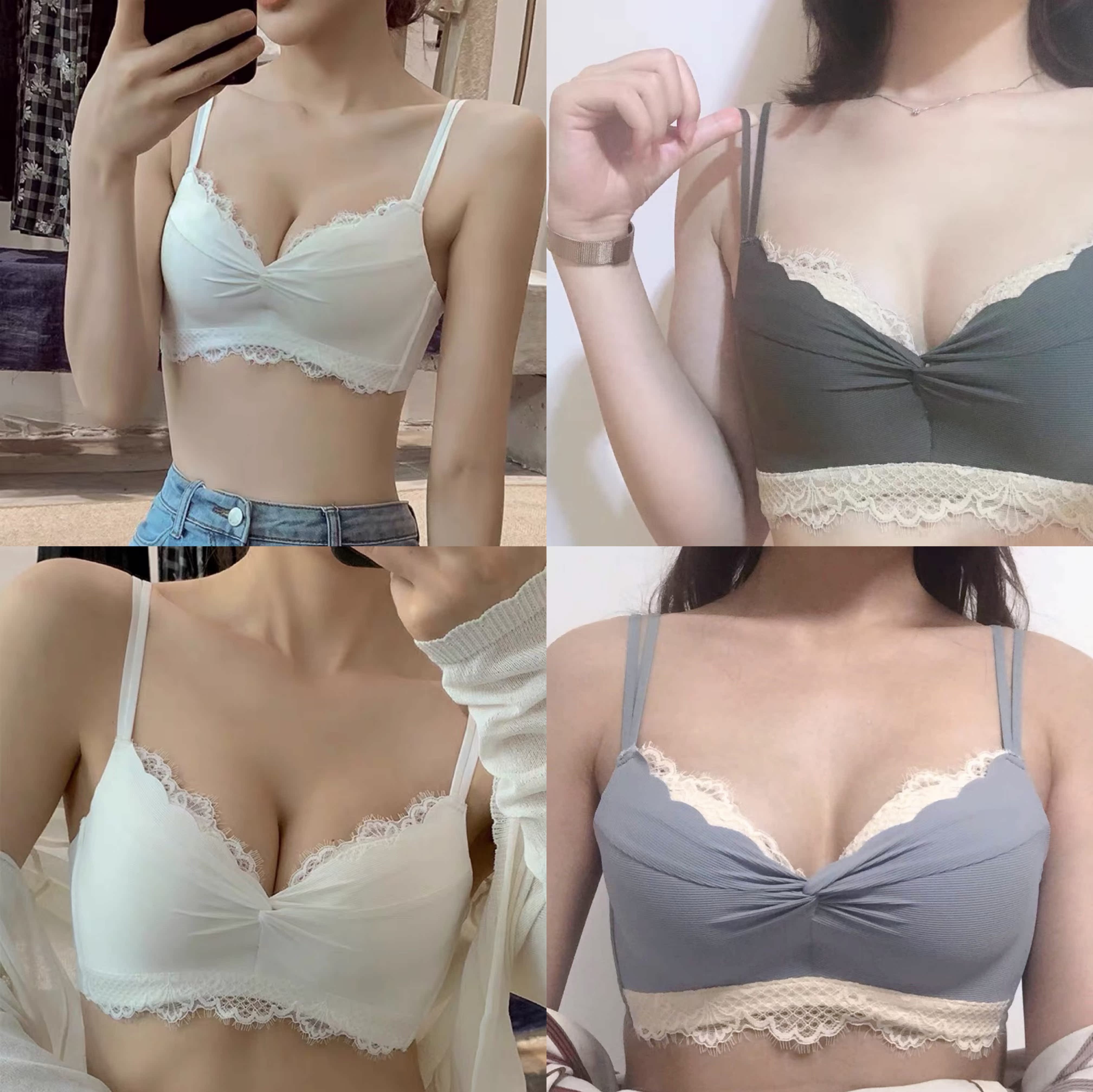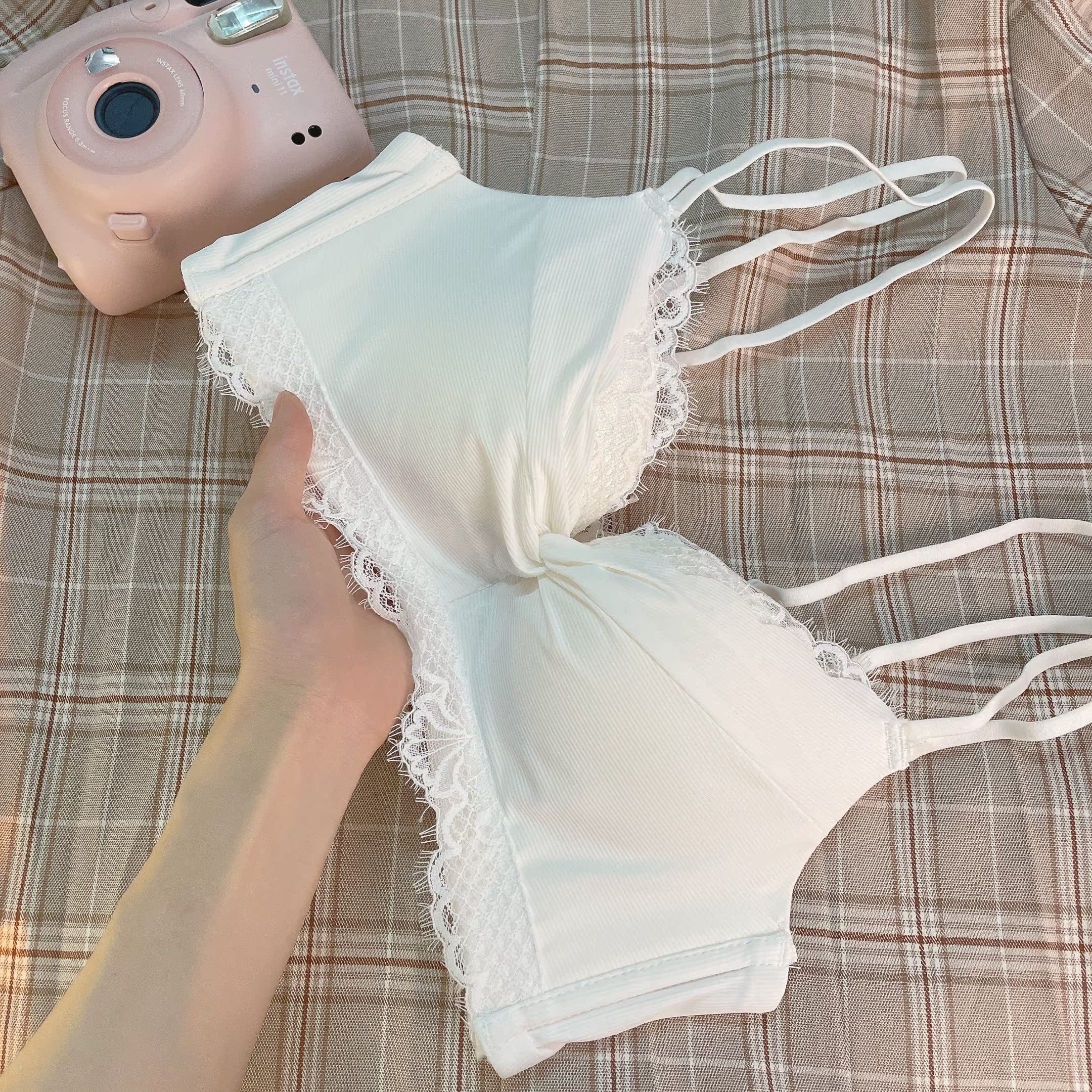 Deep alley hominin underwear women's small breasts gather bra adolescent girls double shoulder with beauty back thin and summer without steel ring