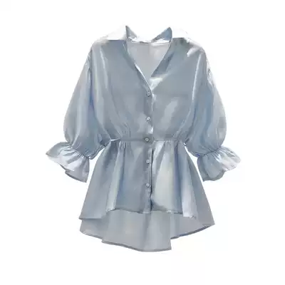 Hong Kong Tide Brand 2021 New Chiffon Loose Loose Flags Blouse Waist Slim V-neck Doll Shirts Women