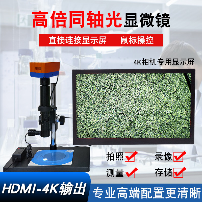 Industrial coaxial light microscope scientific research grade 2K4K digital camera HD HDMI connect display screen professional measuring camera film electronic optical magnifier detection circuit board mobile phone repair