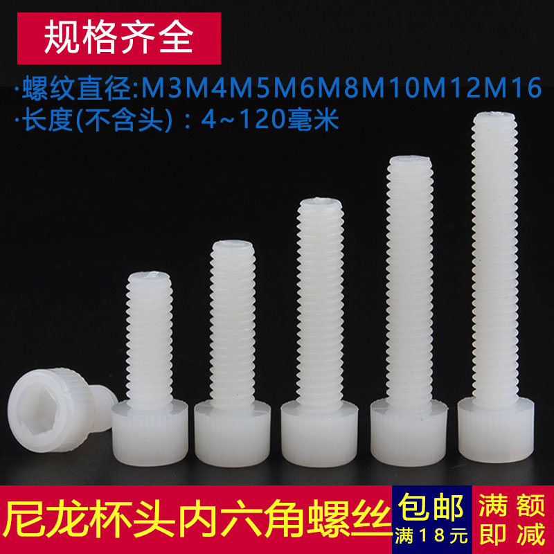 Plastic plastic nylon inner hex screw cup head knurled bolt cylindrical head bolt M3M4M5M6M8M10M12