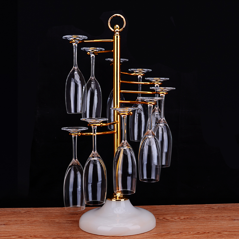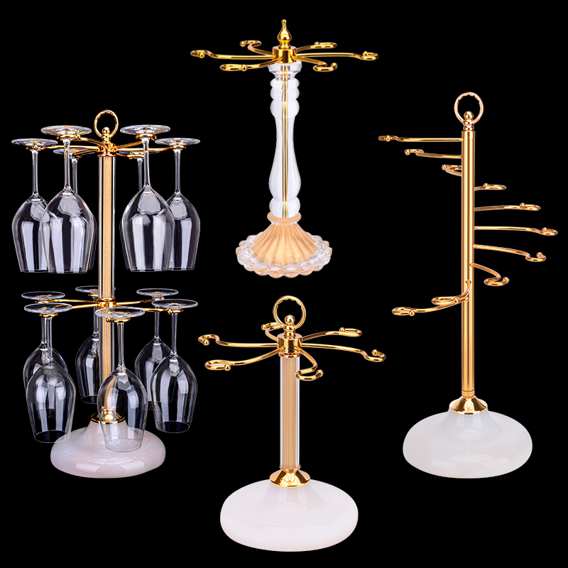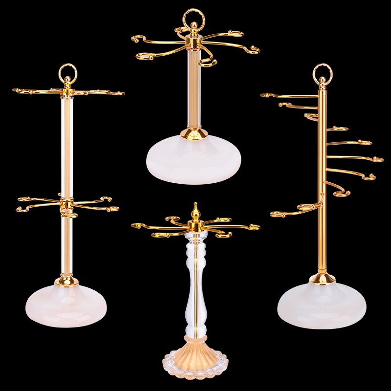 A Trapezoidal Rotary Cup Holder (silver) A silver frame crystal champagne cup 235ml (10 only) A trapezoidal rotary cup holder (gold) A golden rack crystal champagne cup 235ml
