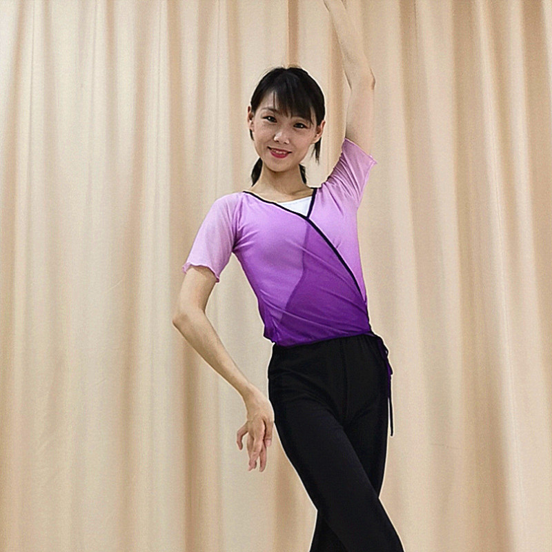 Classical Dance Martial Arts body performance Yarn Clothes Ballet Dresses Ballet Ketraining Dance suit Asymptotic Color Short-sleeved Dresses