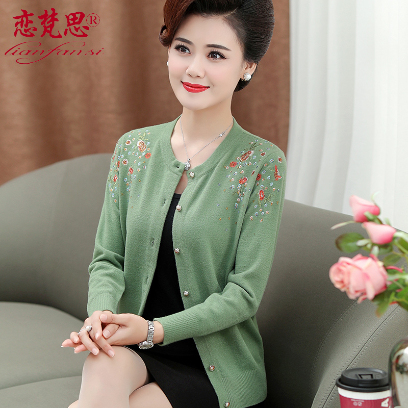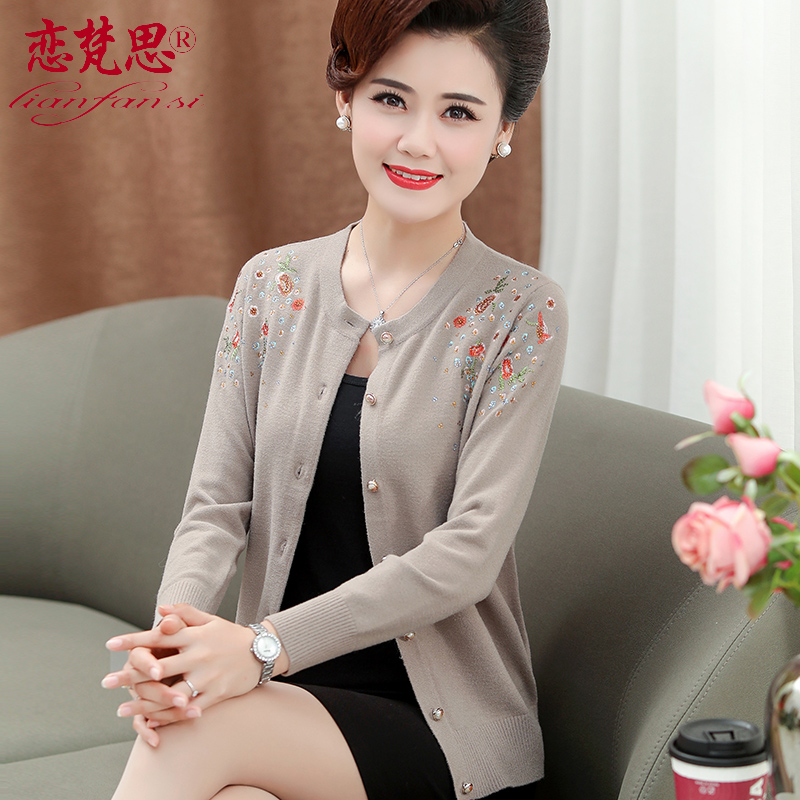 Mom spring and autumn clothes cardigan short jacket 40 years old 50 middle-aged women's western style top middle-aged women's knitted sweater thin