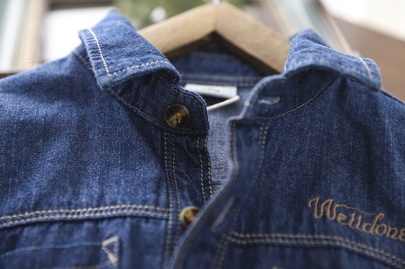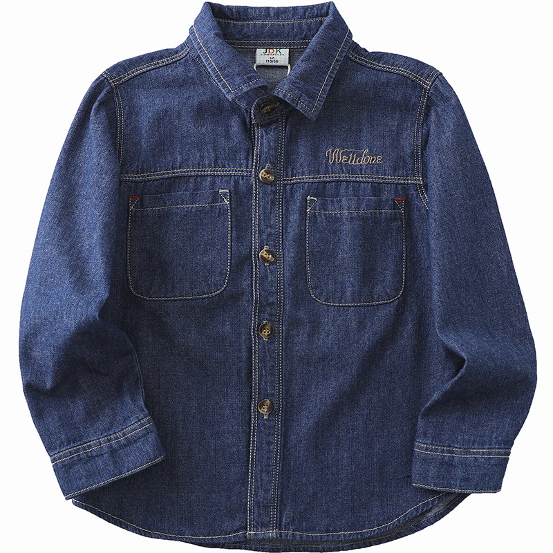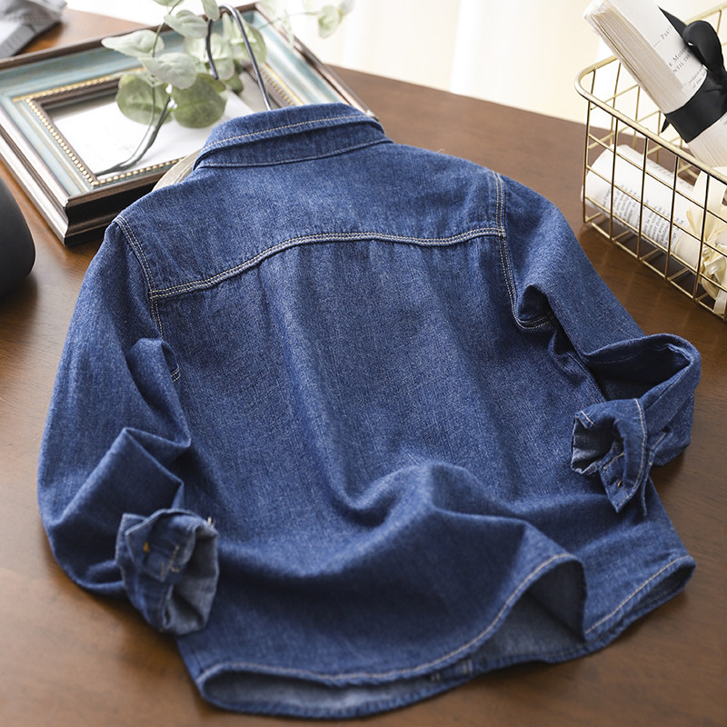 Soft and soft denim ~ boy denim shirt 2022 spring autumn new children girl turned over foreign pie long sleeve shirt