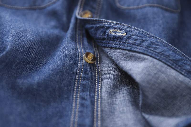 TT2079 Embroidered Letters Denim Long Sleeve Shirt