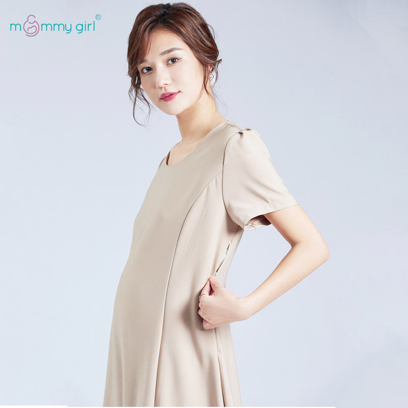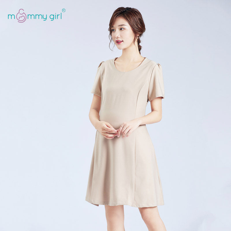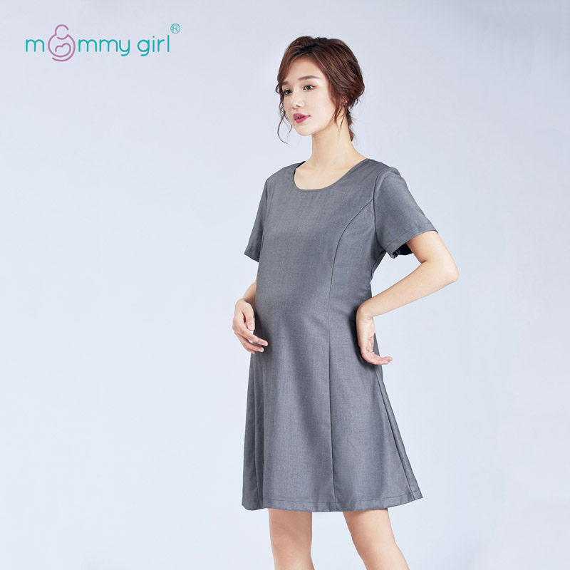 Pregnancy woman dress in spring and summer weather texture to work dress up for work outside clothes fashion loose breast-feeding long dress in a long dress