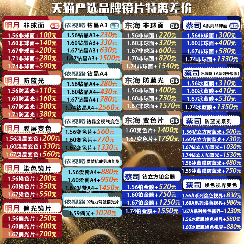 Frame (including Zeiss 1 60 aspheric HD Ice Blue Film) frame (including Zeiss 1 60 Hume Vision HD Ice Blue Film) frame (including Zeiss 1 67 aspheric HD ice blue film)