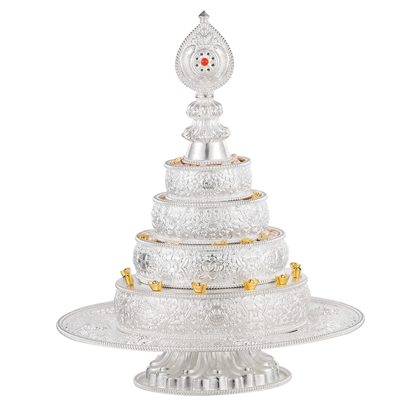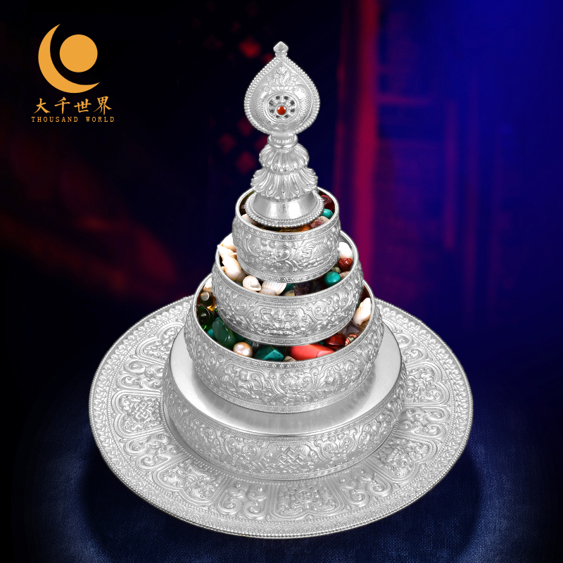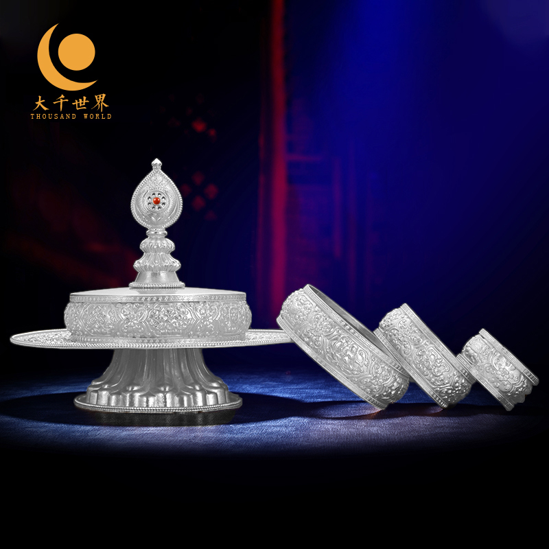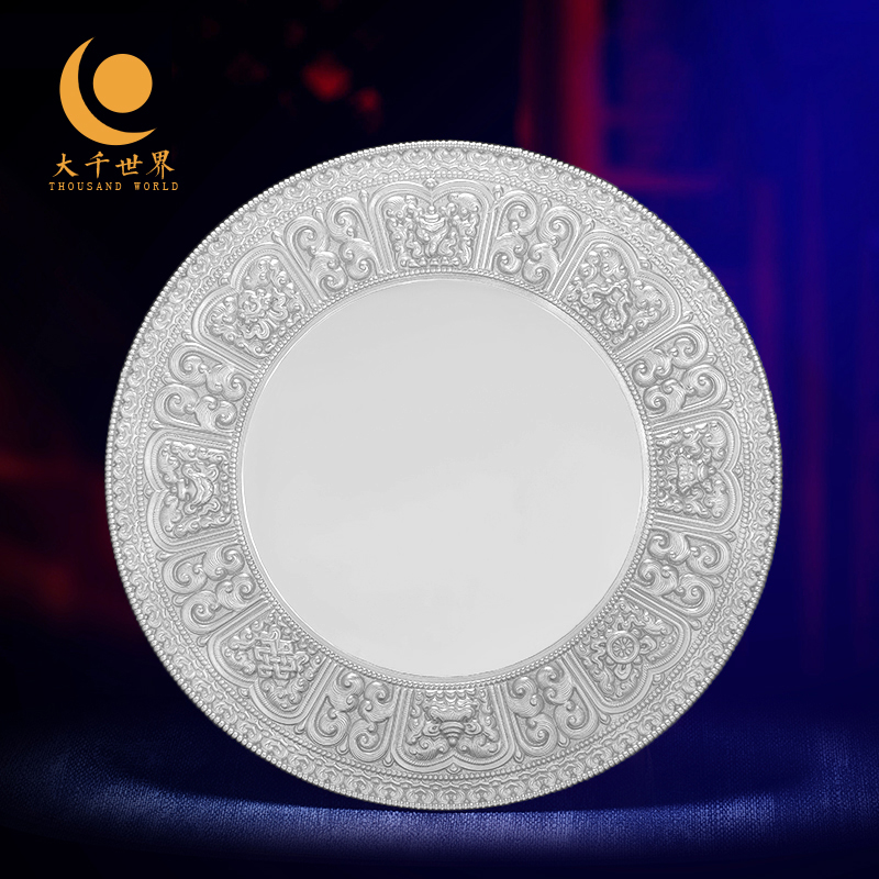 Hidden biography S999 pure silver Manzal disc 8 auspicious carved man's tea Luo for three body manza depute full set number 12cm
