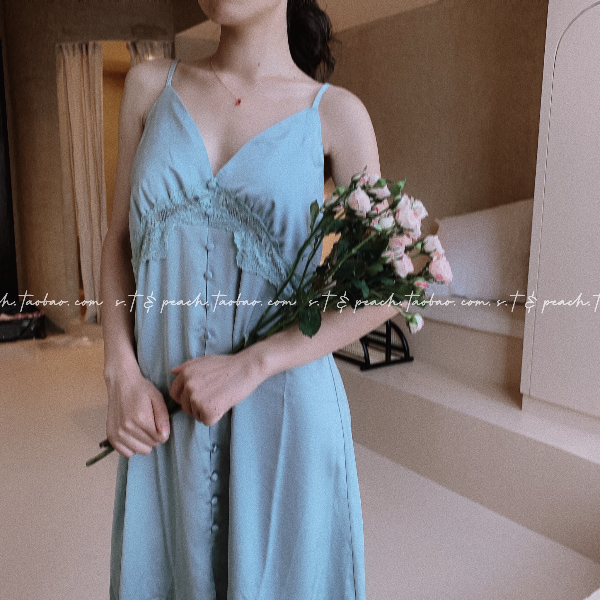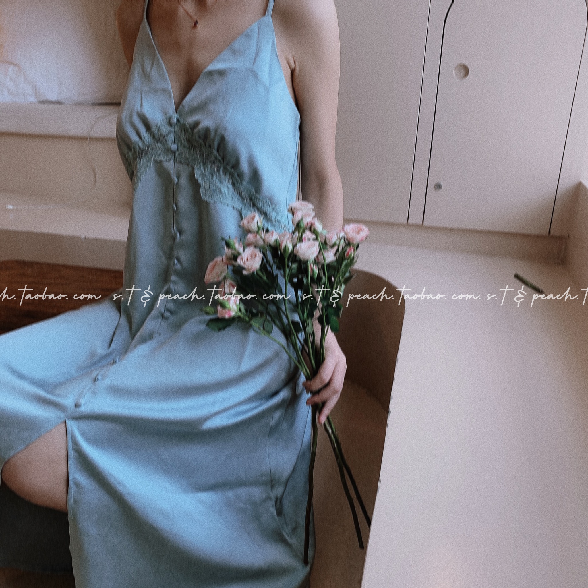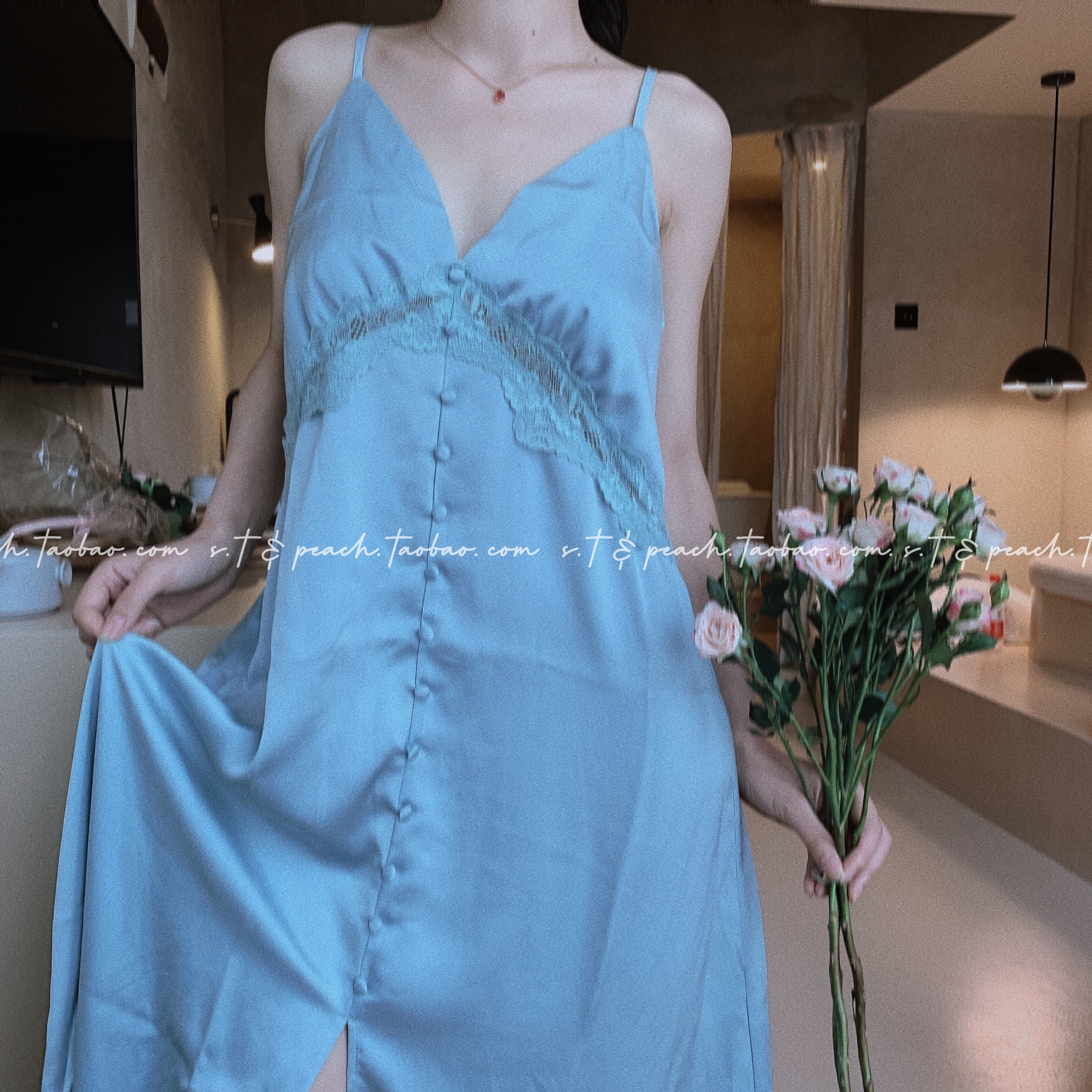 (S T) Lost Benchen French-style nightdress sexy lace suspenders can be worn satin women's summer home clothes