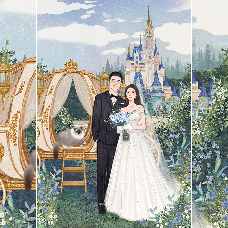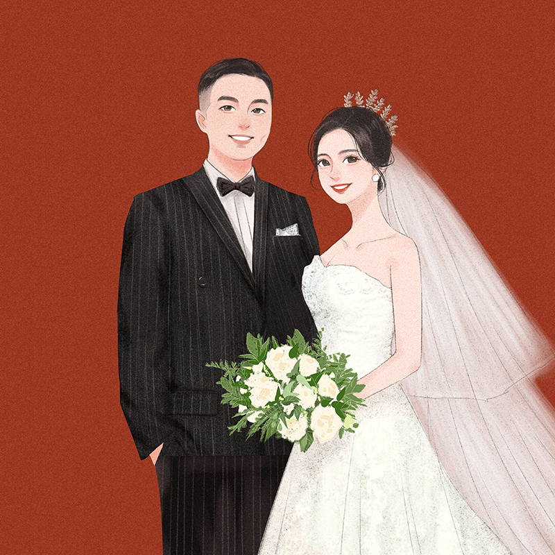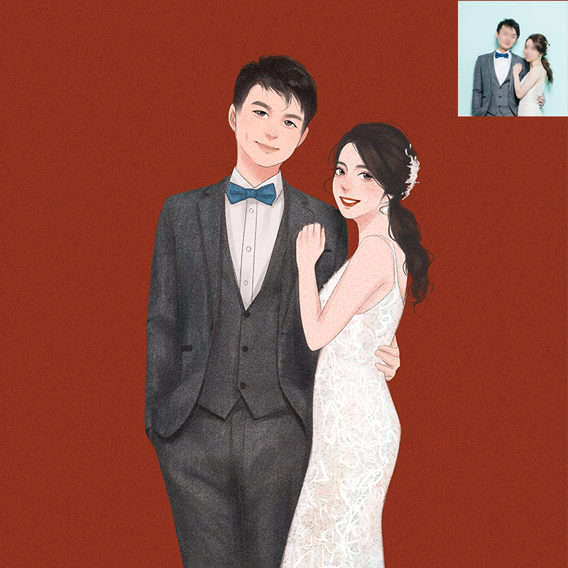 Watercolor wedding hand-painted invitation illustration logo design please paste invitation letter custom cartoon realistic couple avatar