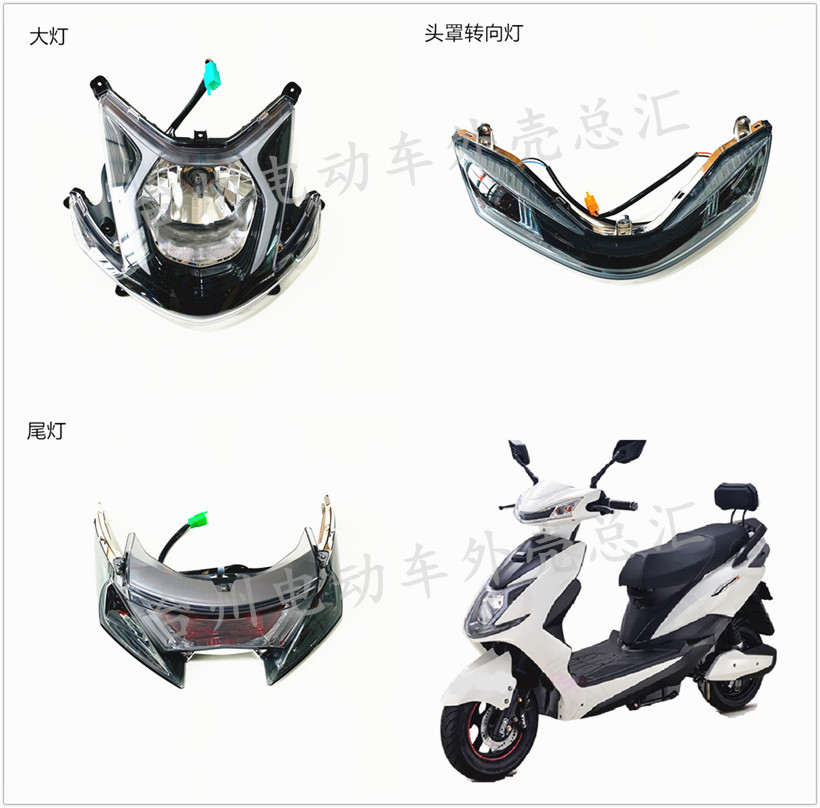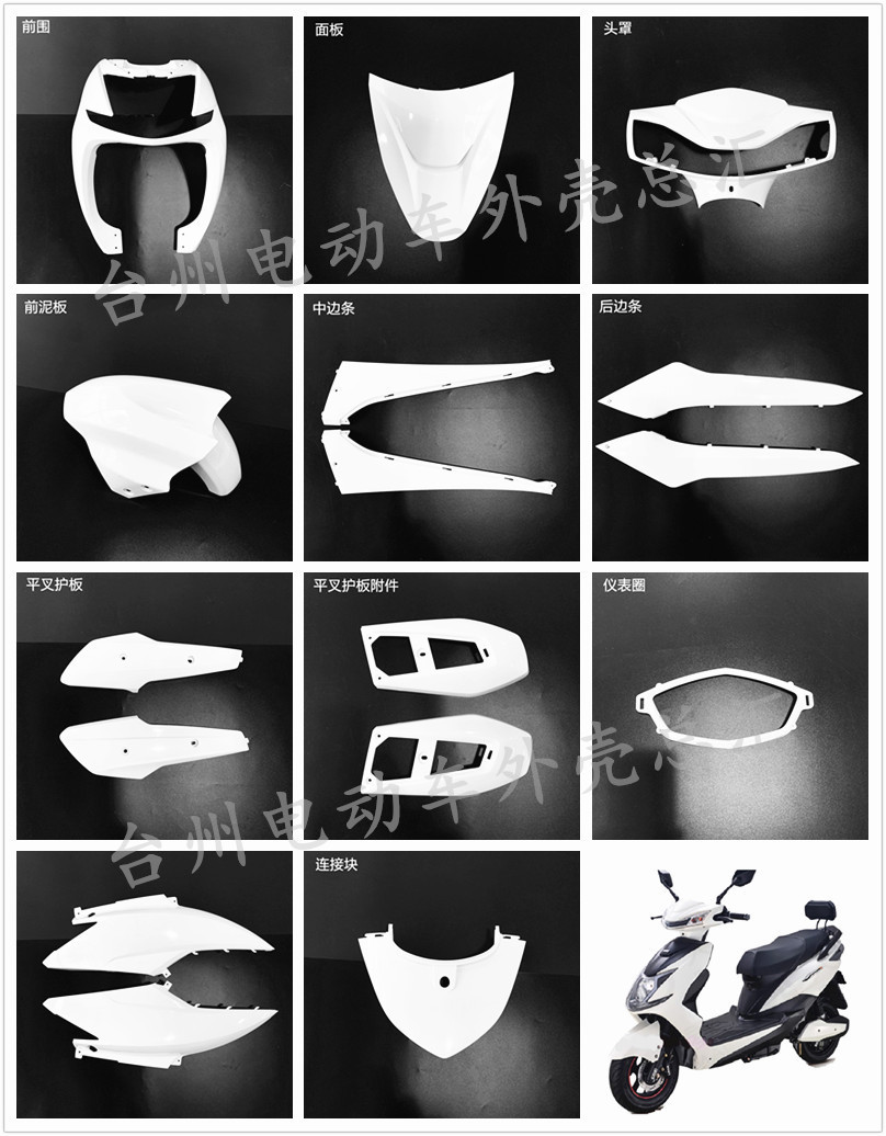 Grey green milky white transparent front panel head hood meter ring front side strip rear side strip rear side strip decorative plate connecting block flat fork guard plate flat fork guard plate accessory meter shell toolbox cup water stop plate footboard