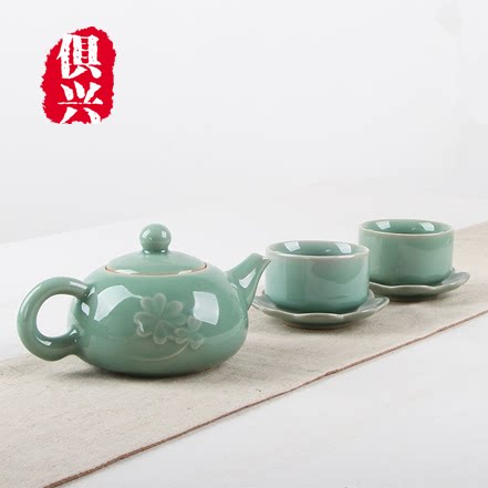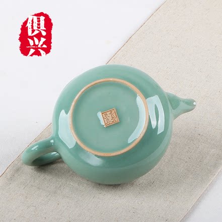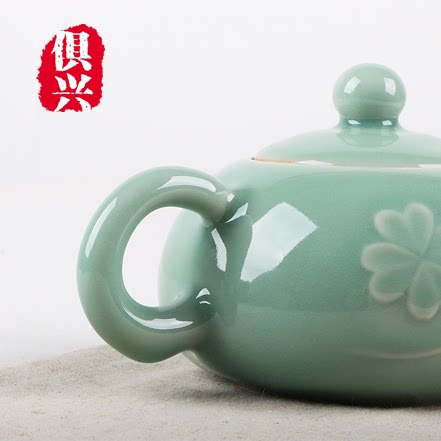 Artisanal Dragon Springs Green Porcelain Bubble Teapot Simple Green Blue Color Home Office Company Tea Maker Tea Personal Single Pot Leaves Dotted