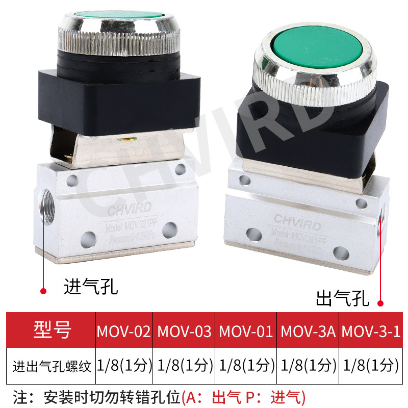 MOV-02 (roller type) MOV-03 (emergency stop button) MOV-03A (mushroom head) MOV321 (single valve body) MOV321PP (flat head)