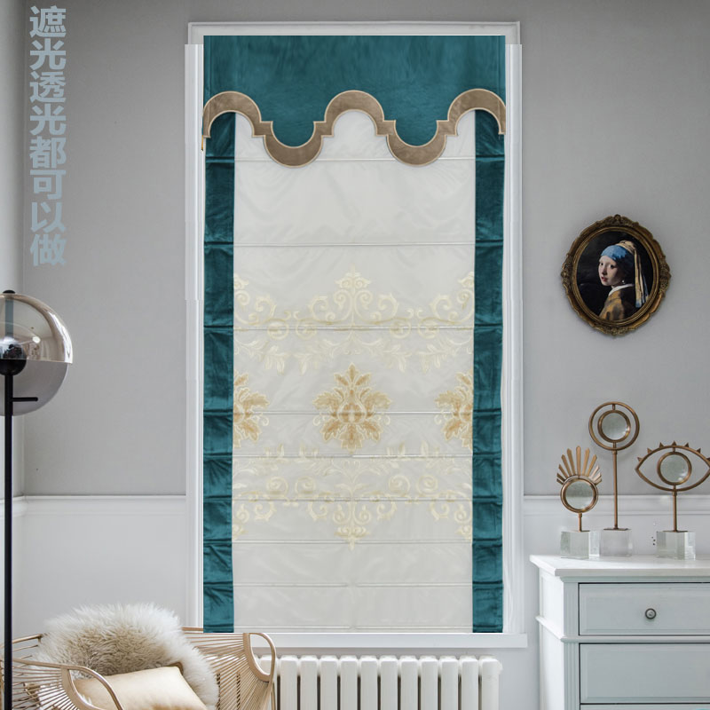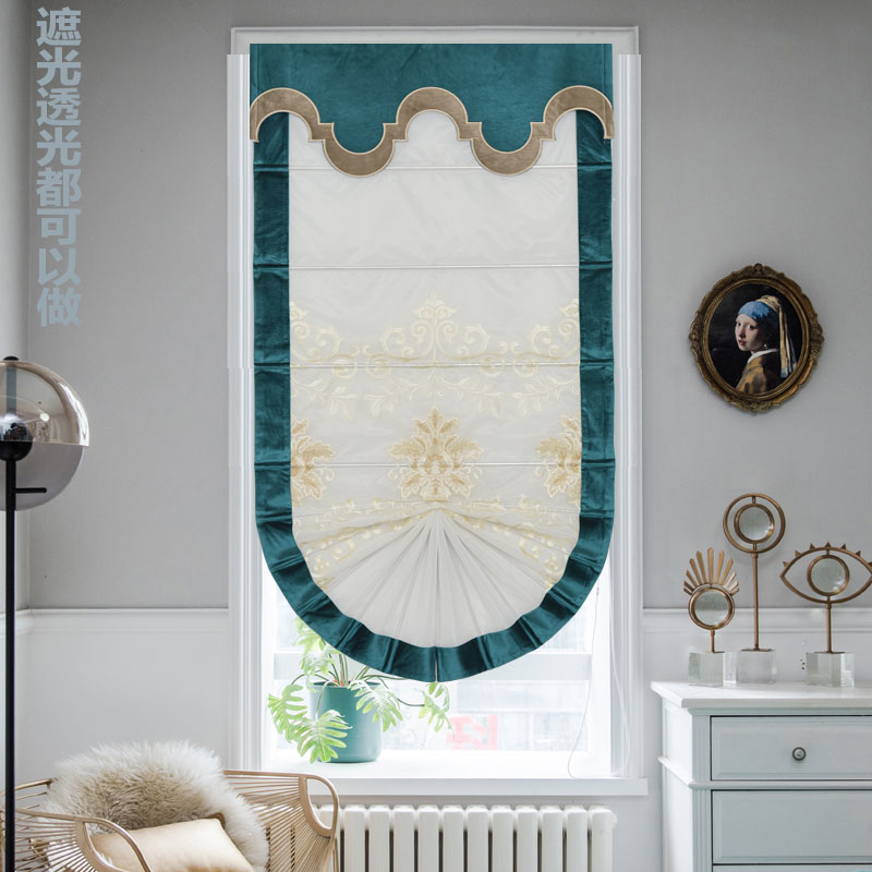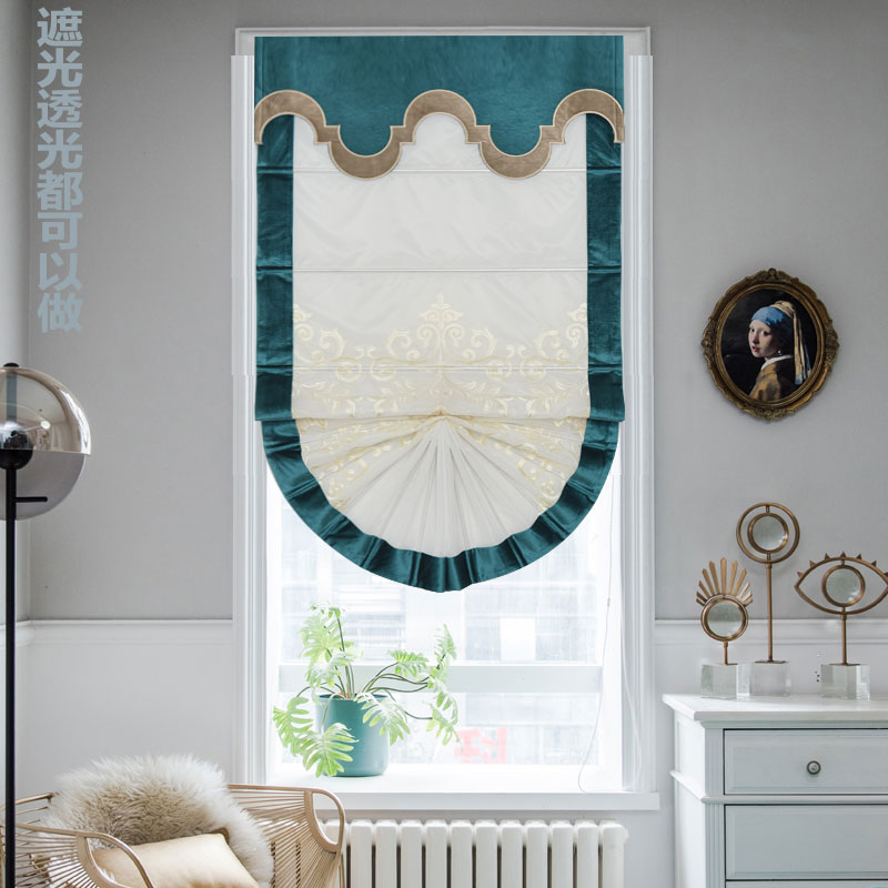 Kitchen Curtains Jacquard half-curtain Lift American light lavish Nordic parquet of Roman blinds sector waveforms Half shading curtains