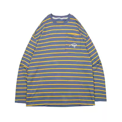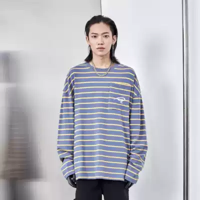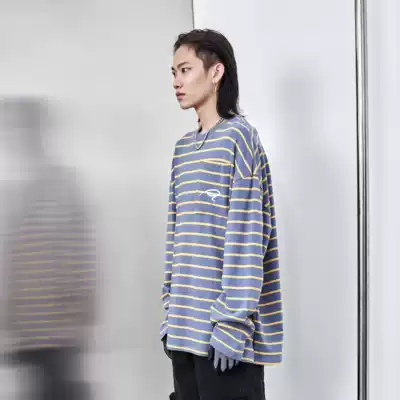 PCLP(PERCLIPS) horizontal stripe embroidery long sleeve T-shirt National Tide brand round neck hip hop loose sweater