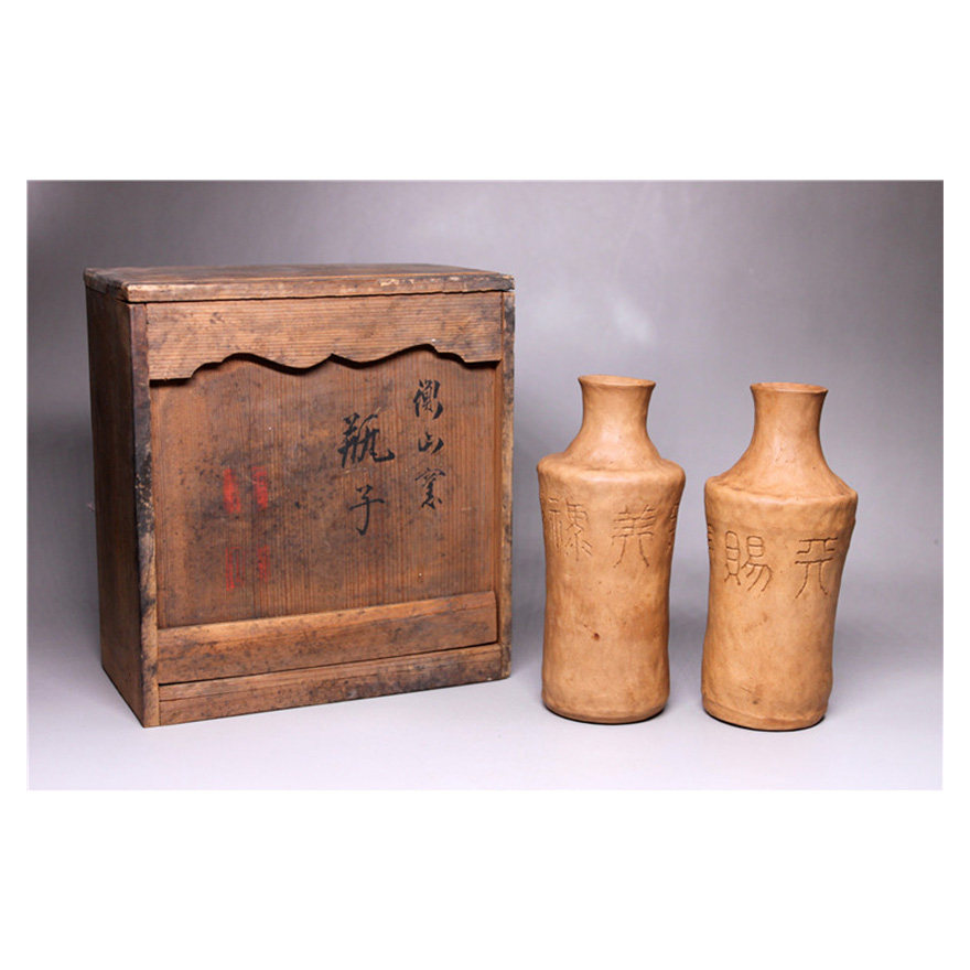 Interesting collection] A pair of Milo wine bottles twisted by the hand of Hengshan, a famous mango-yaki in the Meiji period