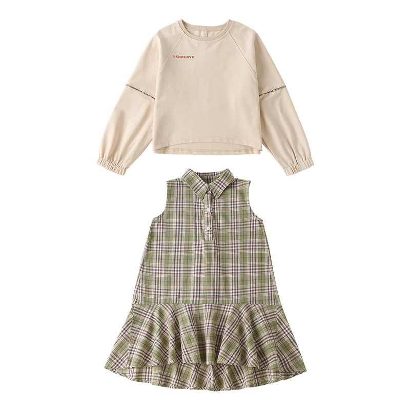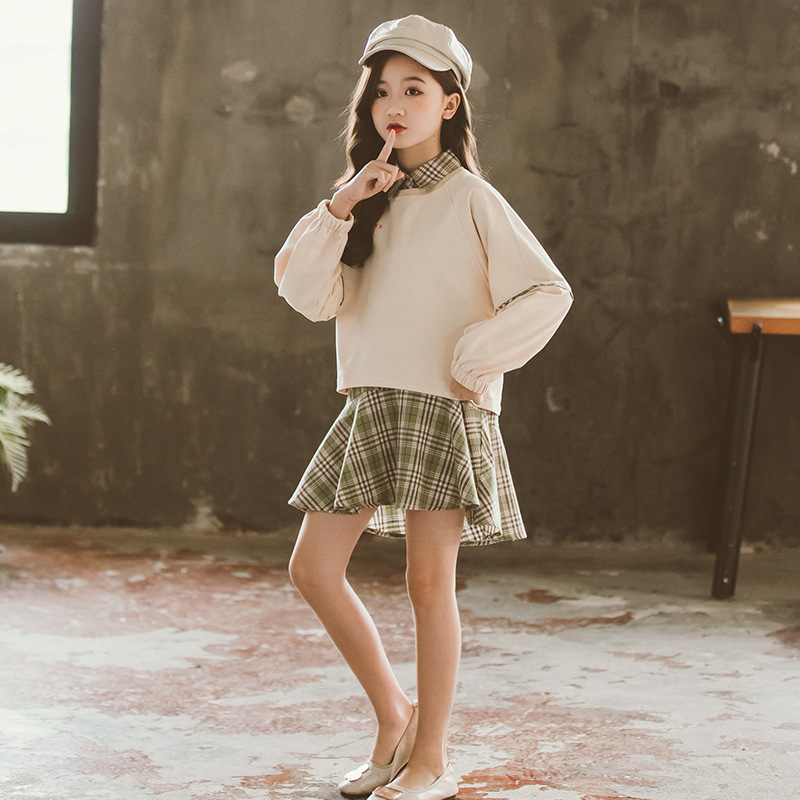 Girls Korean version of the western style suit skirt 2022 new autumn children's middle-aged and older children's pullover sweater plaid skirt two-piece set