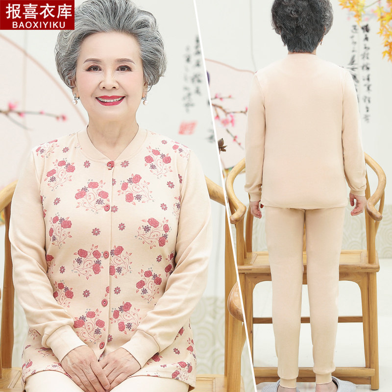 Grandma Chunqiu Long sleeves mid-aged pure cotton opening jacket lingerie women's life autumn clothes sanitary pants Mrs Mama suit