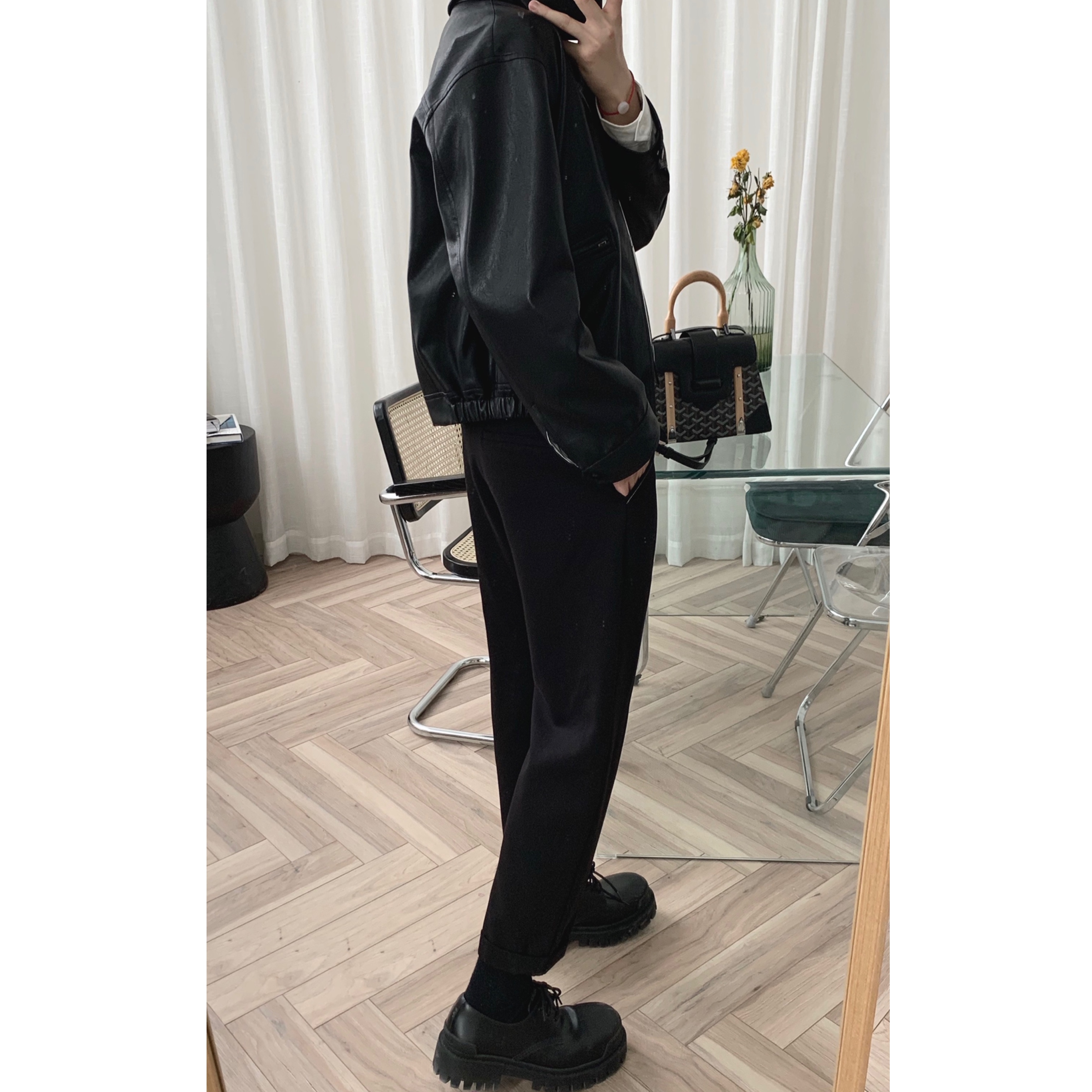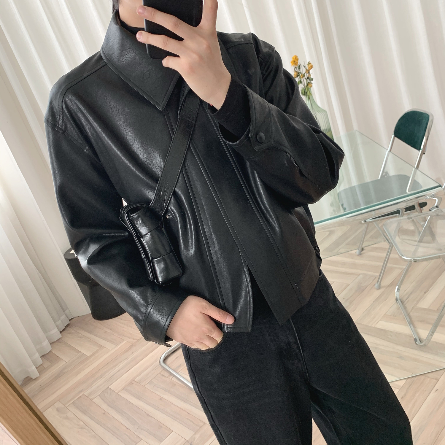 Atea With Agu Shorts Dark Black Leather Clothing Male Korean Version Tide Genre Overcoming Male Street Locomotive Clothing Leather Jacket