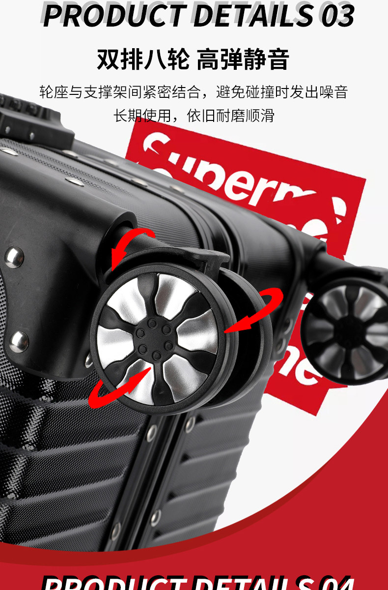 20 inches (domestic boarding) suitable for 2-3 days shipping insurance Lifetime quality insurance 22 inches (short trip) suitable for 3-5 days shipping expenses Lifetime insurance 24 inches (medium and long distance tour)
