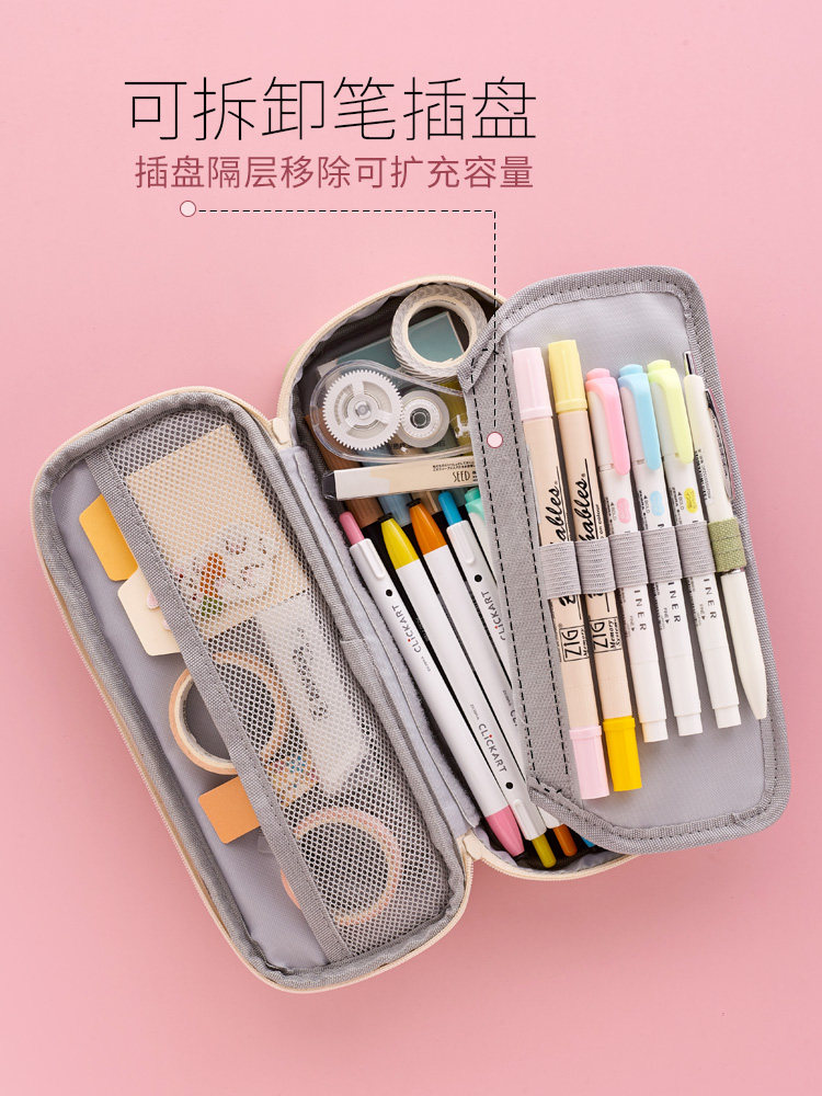 Anko pencil bag large-capacity portable primary school girl cloth art stationery box male Korean creative simple girl heart junior high school student pencil bag multi-functional multi-layer literary canvas stationery bag net red