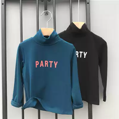 2021 autumn new small and medium-sized children's clothing high-neck letter long-sleeved T-shirt Korean version of men's and women's children's bottoming shirt top tide