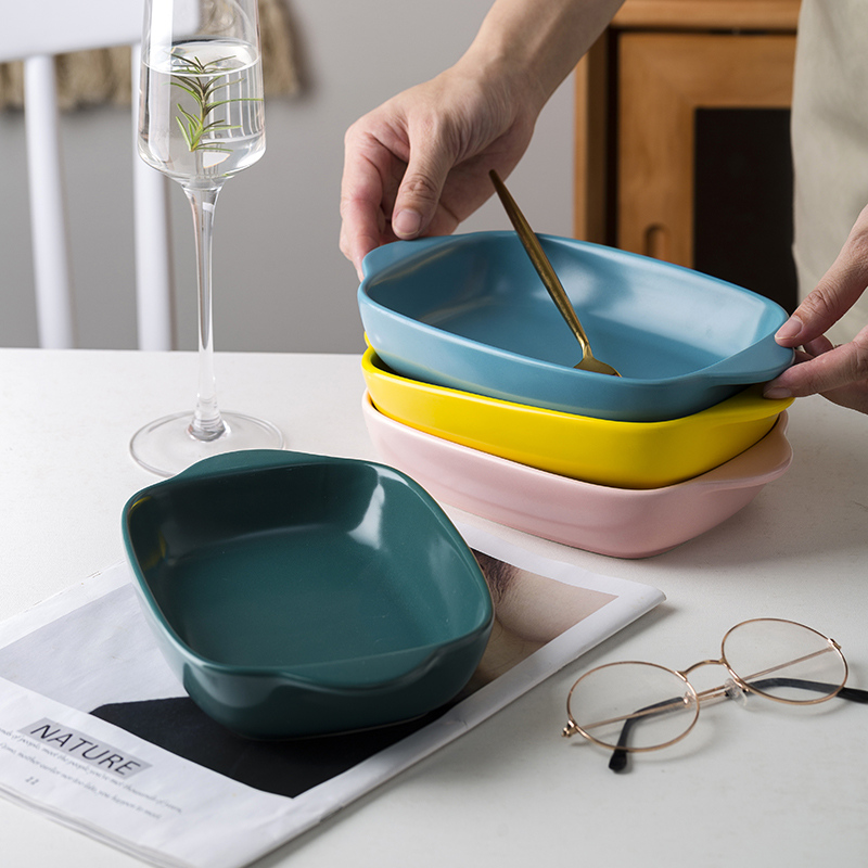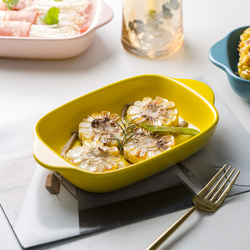 Baking Pan Ceramic Cheeses Baking Dinner Tray Microwave Oven Double Ear Dish Oven Special Cutlery Creativity Cute Home Baking Bowl
