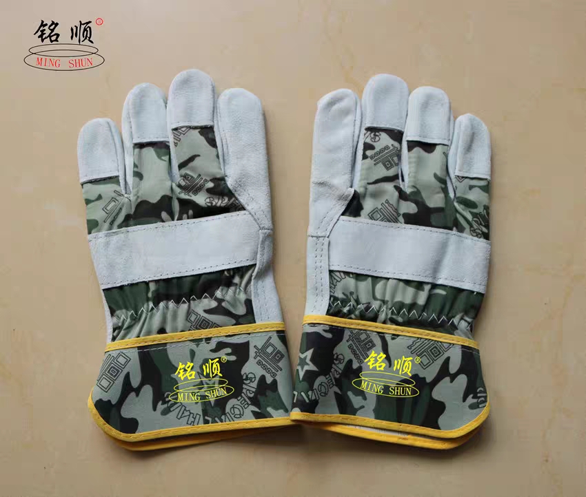 Shelf Worker Camouflage Mingshun Short Leather Work Gloves