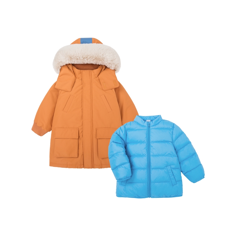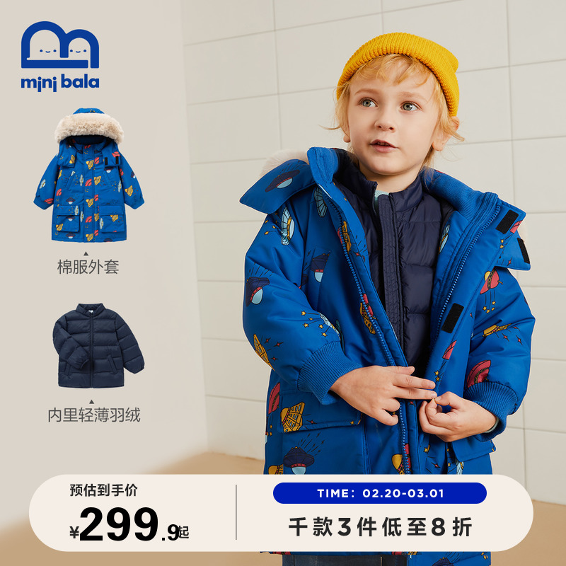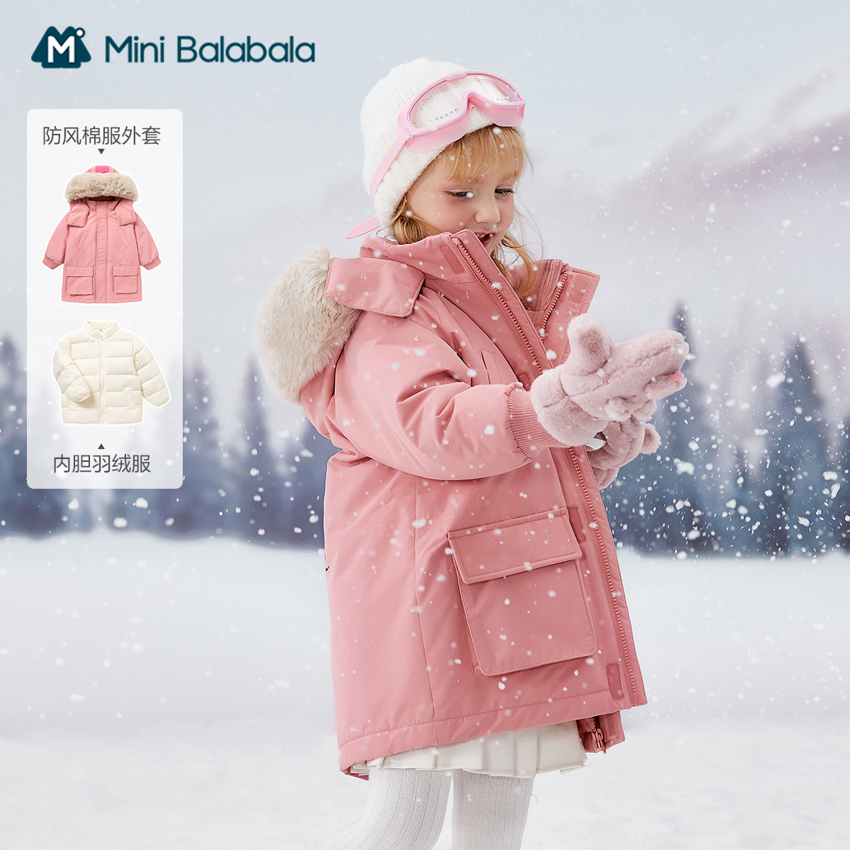 Minibala Children's Down Down Winter Boy Girls Girls Three Waterproof Oil and Anti-stained Long Down Costumes
