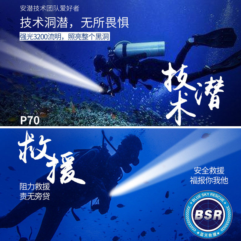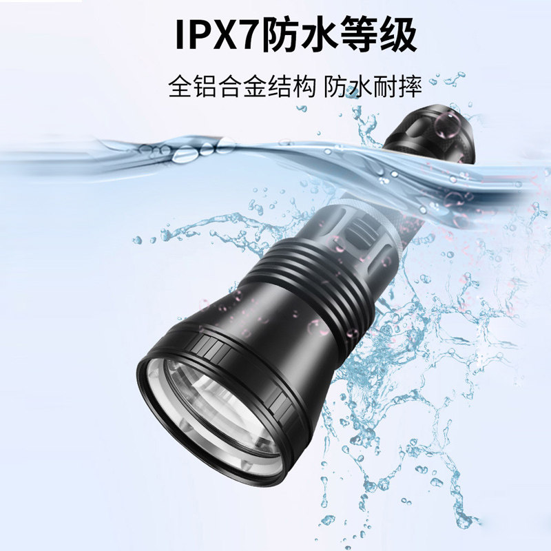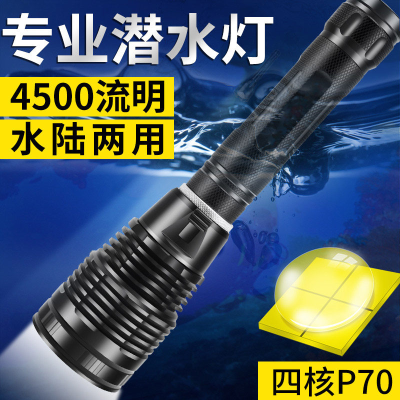 Underwater professional diving flashlight P70 strong light deep water ultra bright waterproof night diving searchlight super long endurance yellow light