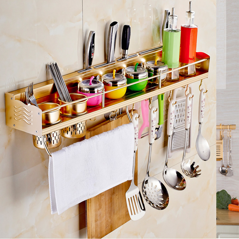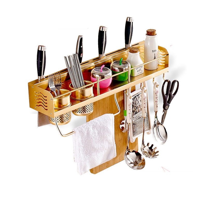Free Punch Golden Kitchen Shelving wall-mounted boiler Scoop Spoon Hanging tool holder Cutting Board Containing the Divine Instrumental Seasoning Jar Rack