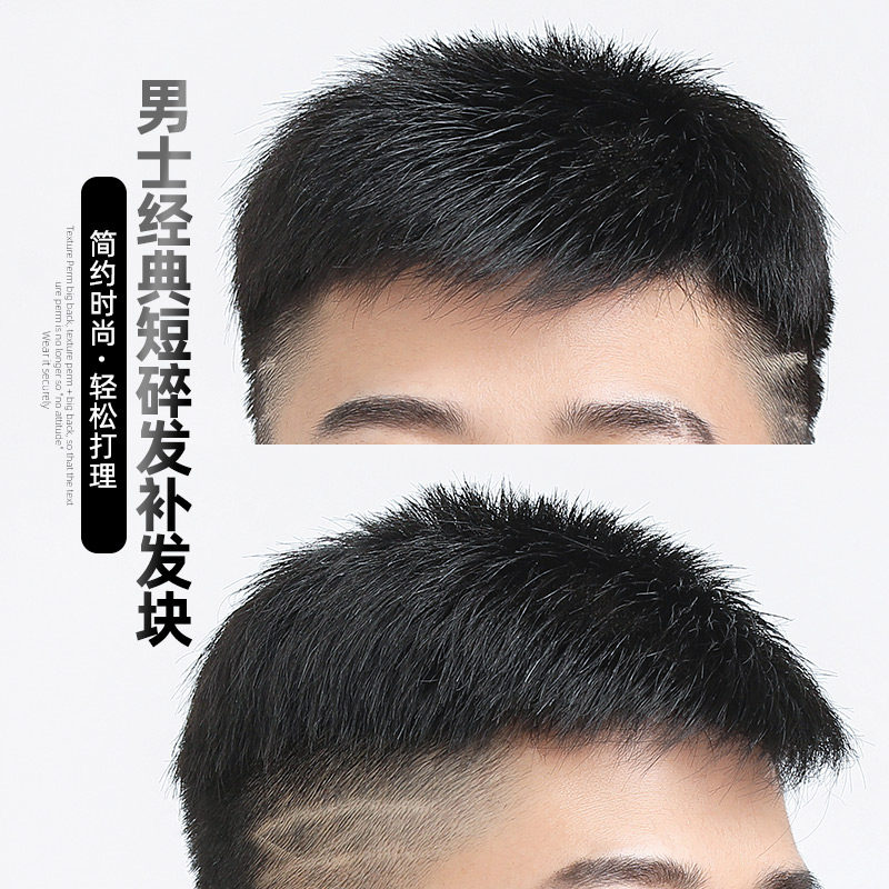 Real hair top replacement hair block men's hair inch short broken hair wig men's short hair handsome natural forehead bald wig piece