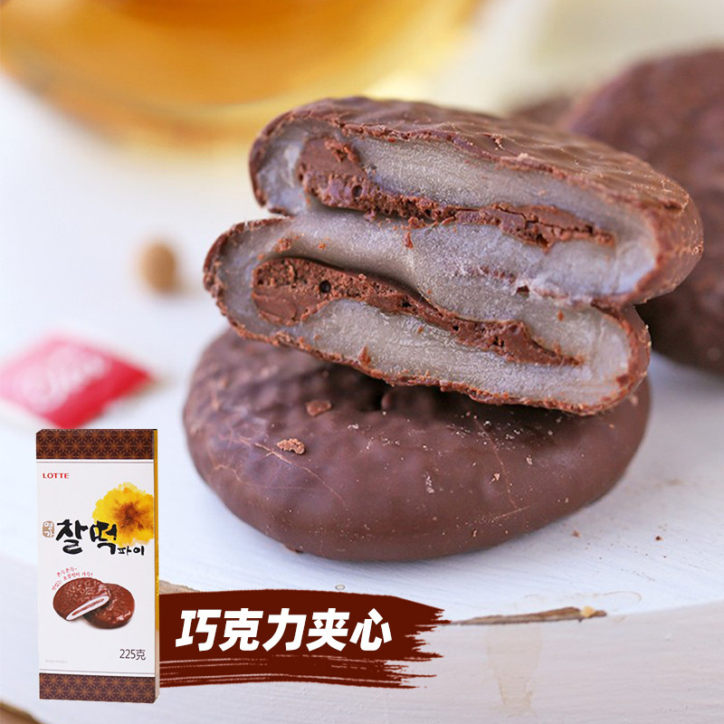 Korea Imports Lotte Chocolate Cake Pie 225g Afternoon Tea Glutinous Rice Cake Sandwich Rice Cake Masho Snacks