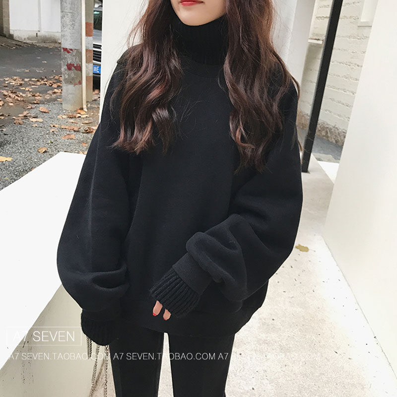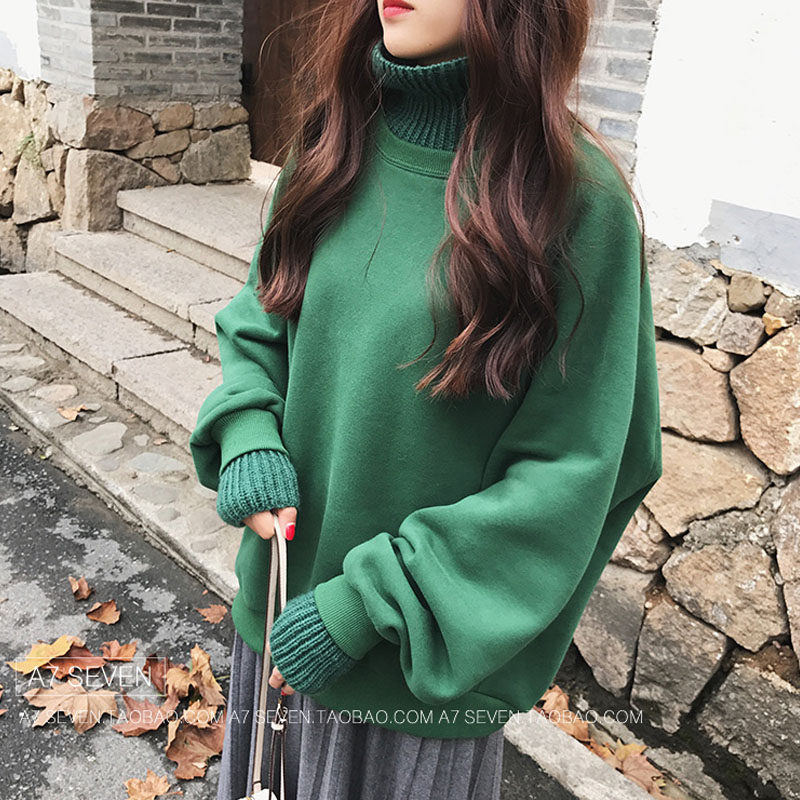 Stock Splicing High Collar Fake Two Weaters Women 2020 Autumn Winter New Korean Version Loose Plus Suede Thickened Long Sleeves