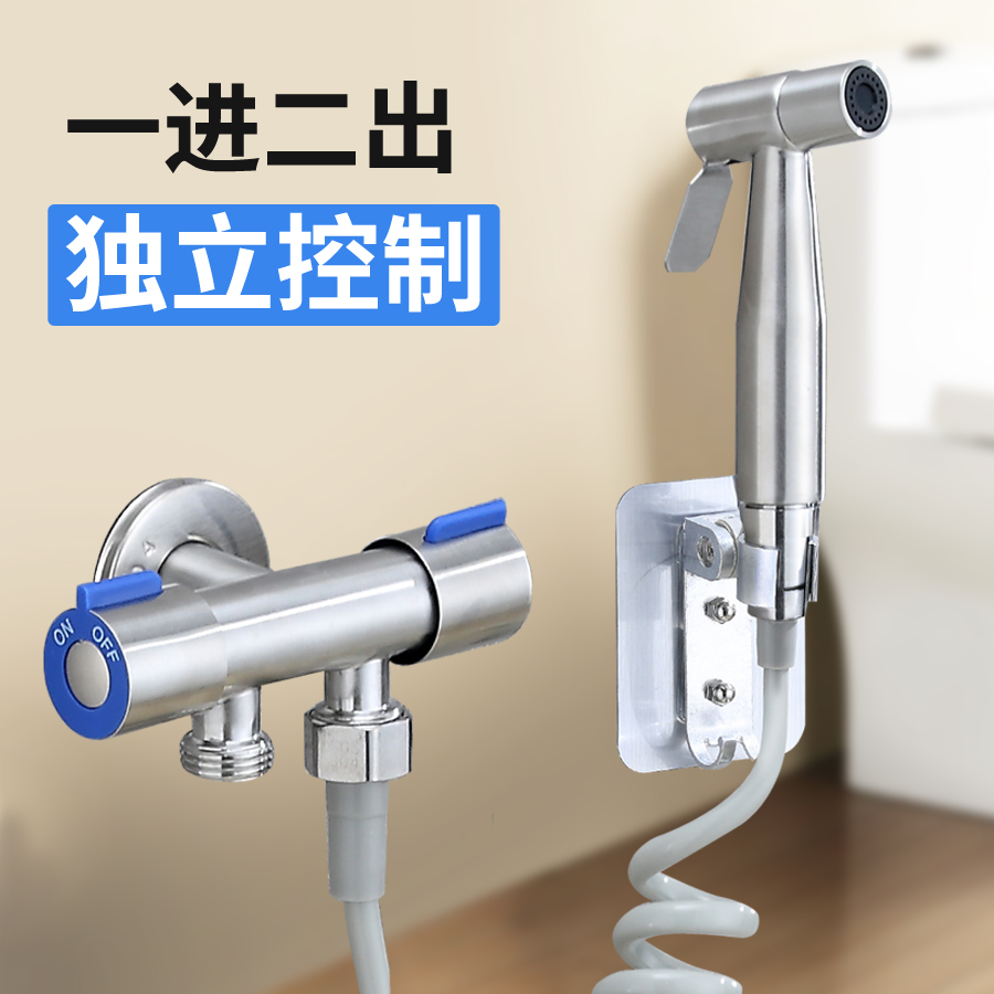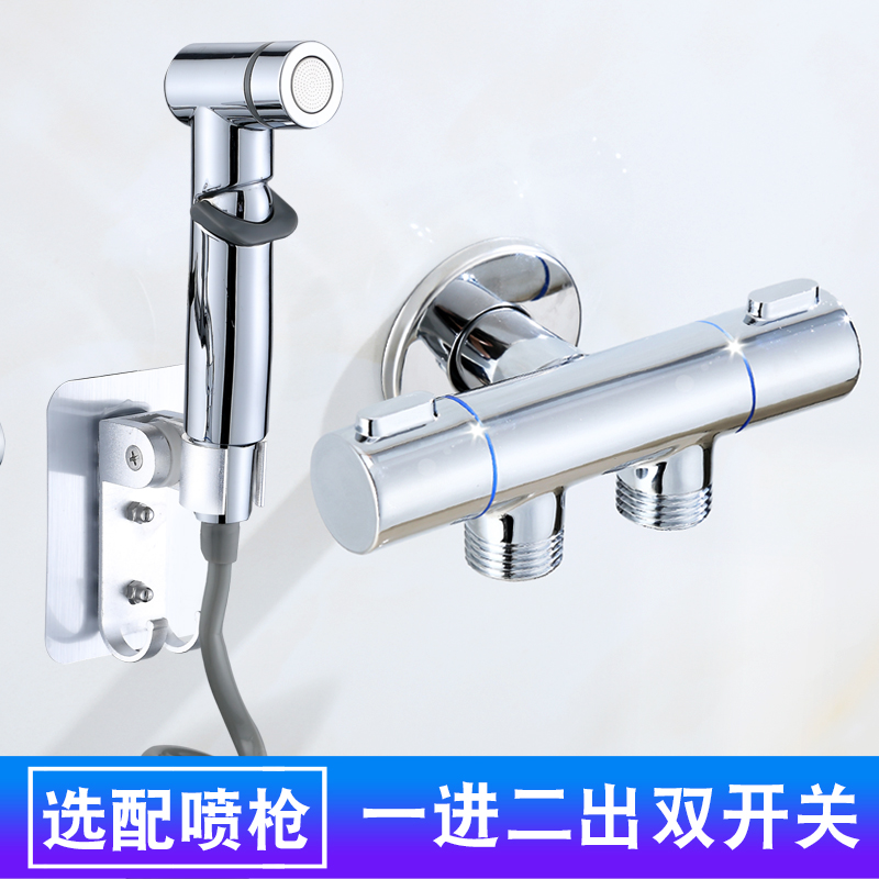 Triangular valve full copper double cut double switch 10% Two-angle valve one-in-two out of toilet three-way valve water Dragon head with spray gun