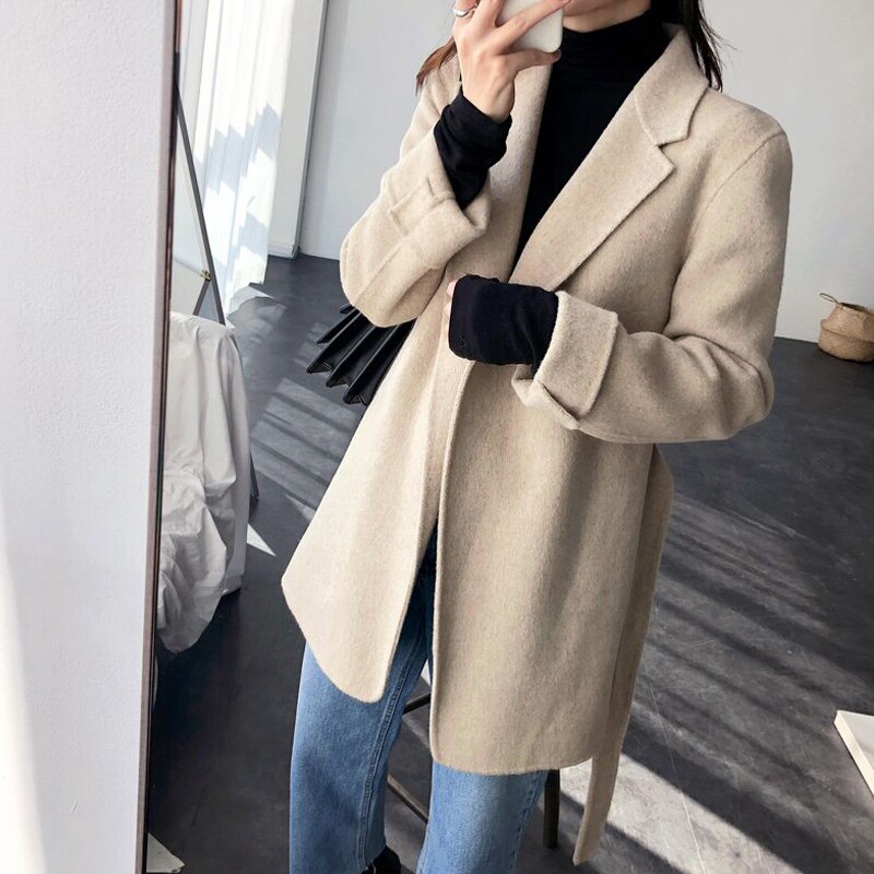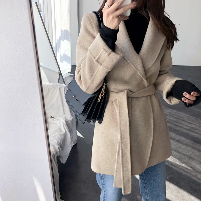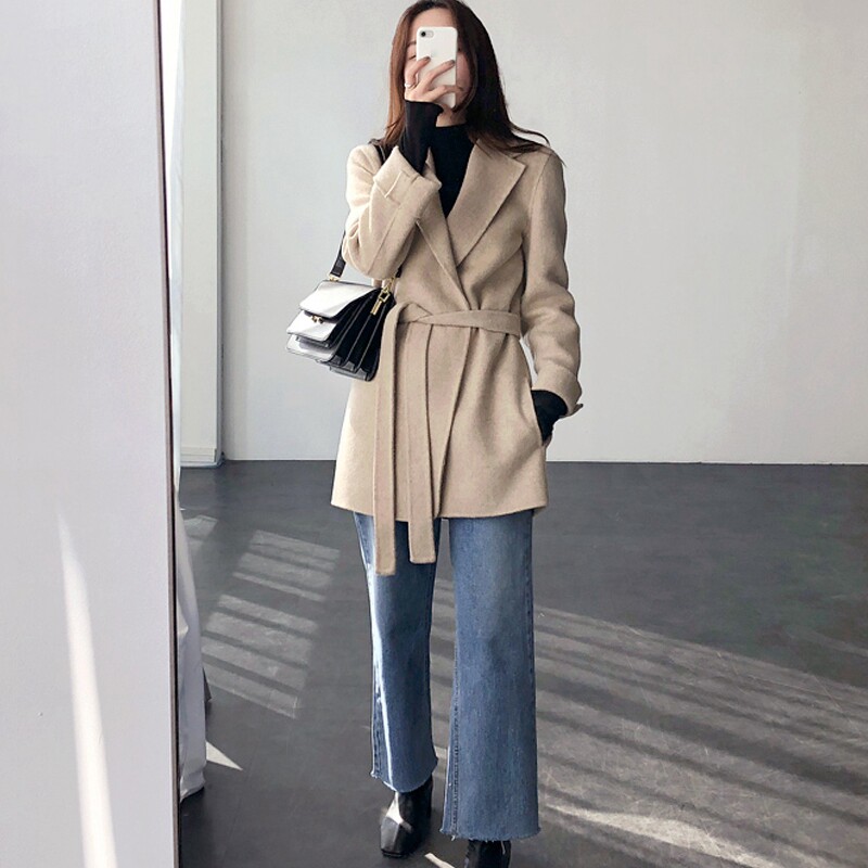 MSTOKYO double-sided cashmere coat women's short lace-up 2020 autumn and winter new wool suit wool coat women