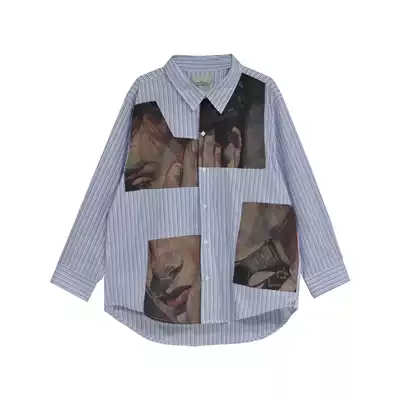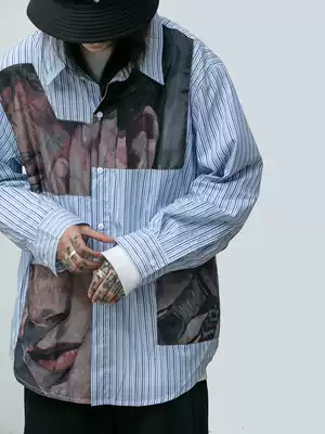 LIMPIDOCULUS(LIMS)20AW stripe oil painting mold portrait separation cloth patch male tide long sleeve shirt