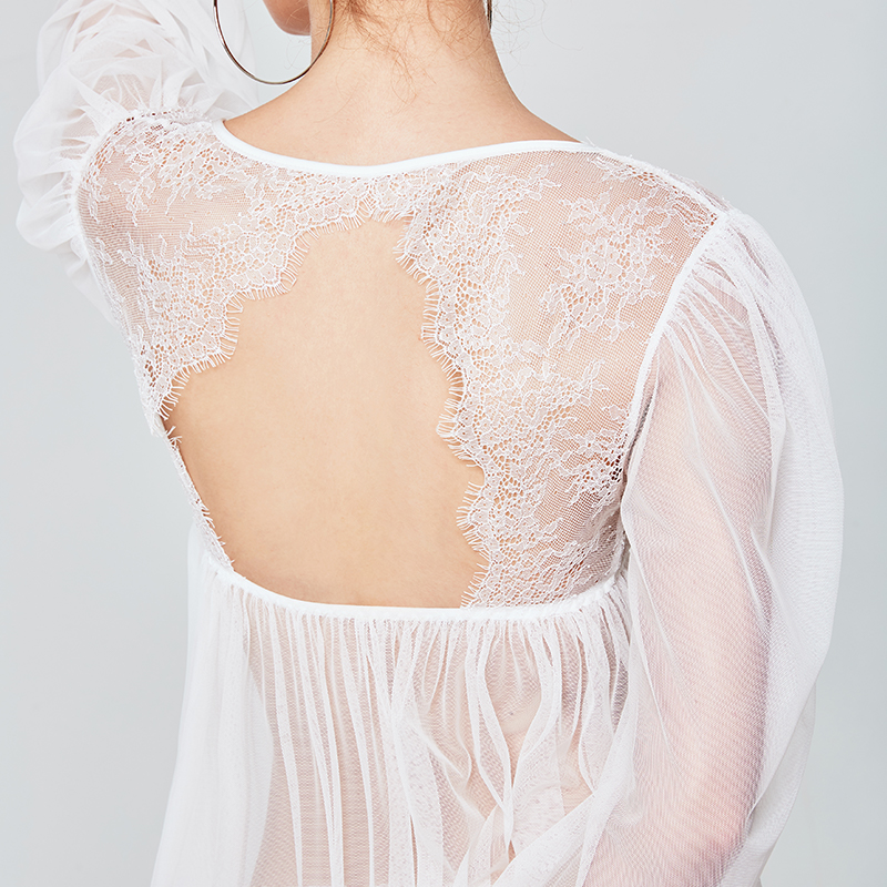 Curious Miss Sexy Transparent Fairy Pajamas Summer Thin Perspective Deep V lace sleeping dress purity