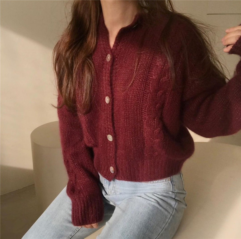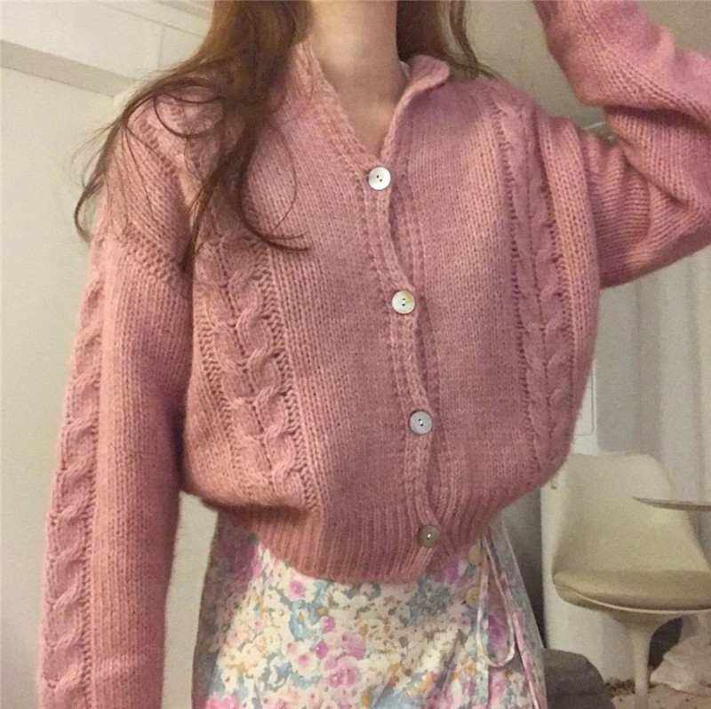 Knitwear Girl 2022 Autumn Winter New Korean version Fashion light cooked wind warm and thickened single row of buttoned long sleeve sweater