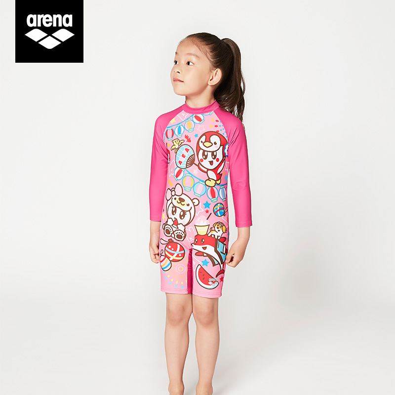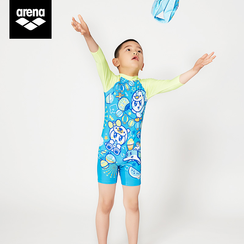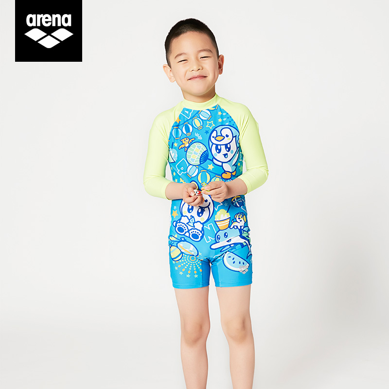 areena Arena children conjoined swimsuit long sleeve shorts male and female sunscreen swimsuit KMS0809UK