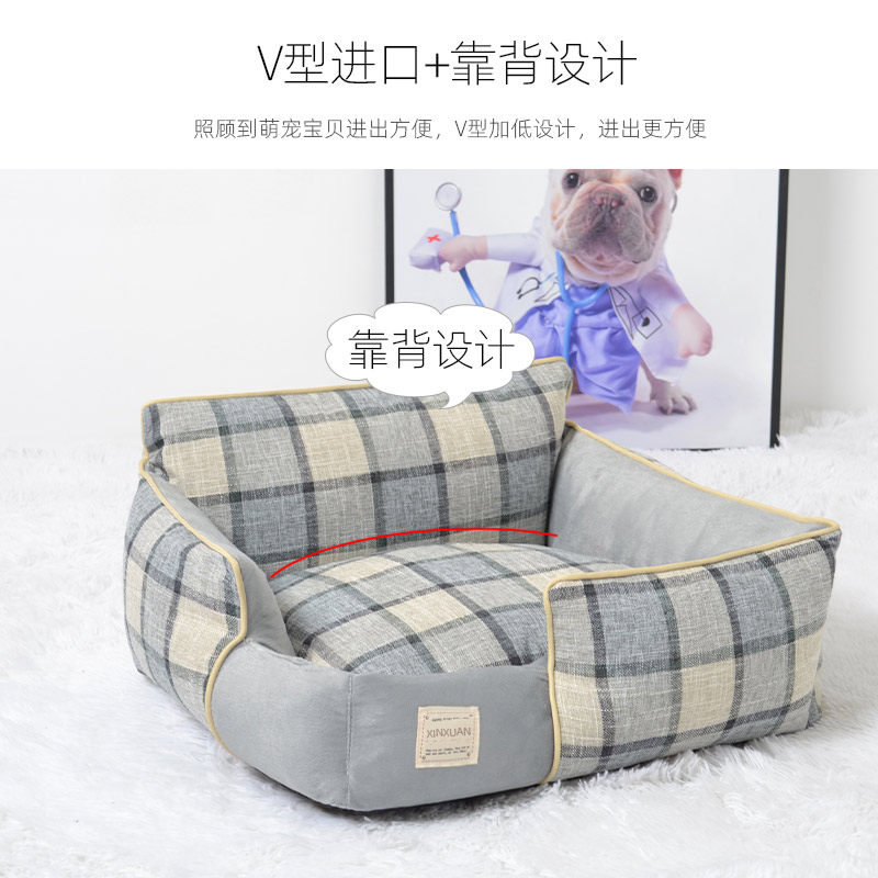 Winter Thickened Warm Dog Nest Cotton Linen Grid Pet Nest Teddy Dog Nest Full Removable Wash Resistant Bite All Season Universal