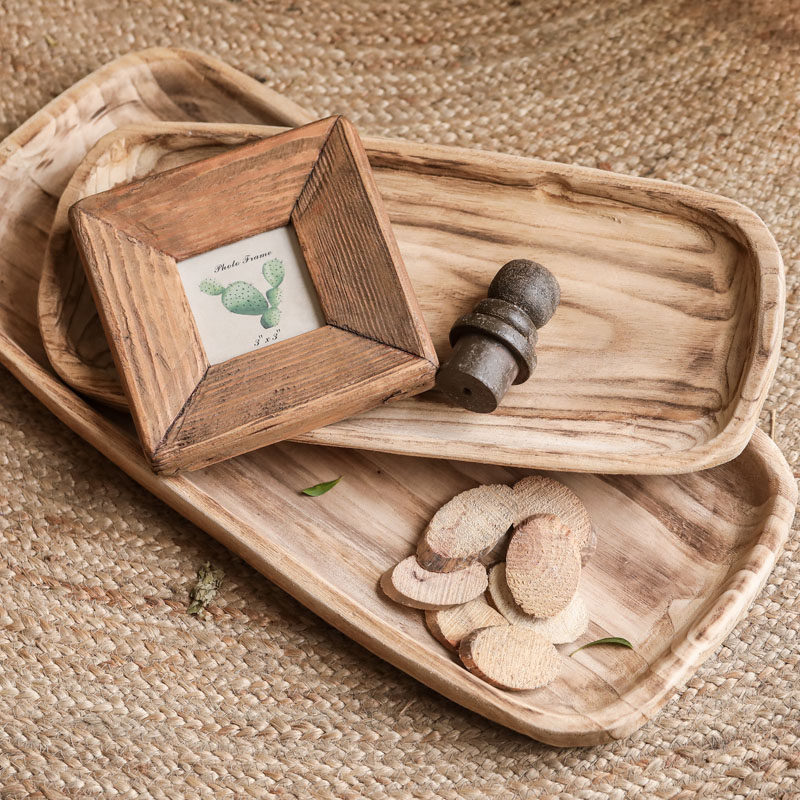 Left Bank Mata Wood Instrumental Beauty-Paulownia rectangular Tray Tea Tray Solid Wood Pendulum with Silent Wind Retro Decorations