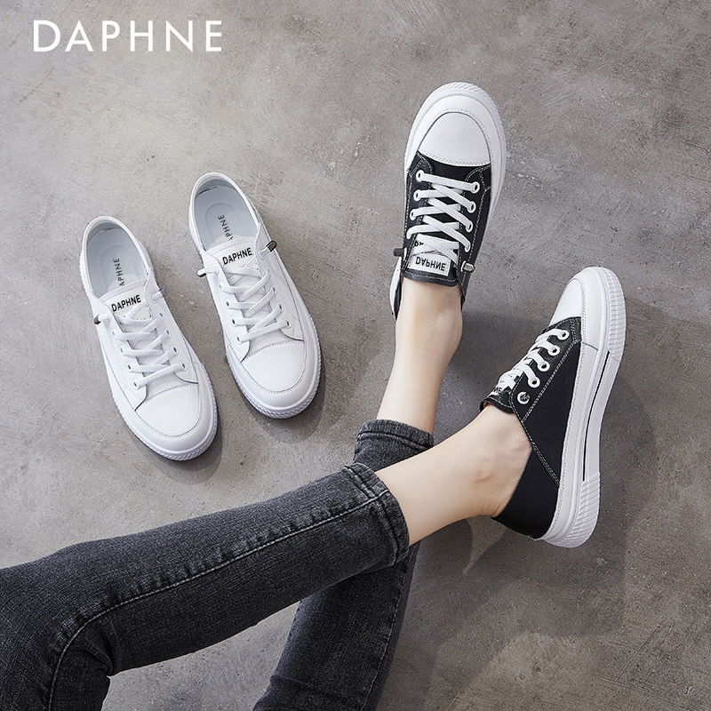 Daphne leather white shoes women's shoes 2023 new summer hot style all-match sneakers casual flat canvas shoes