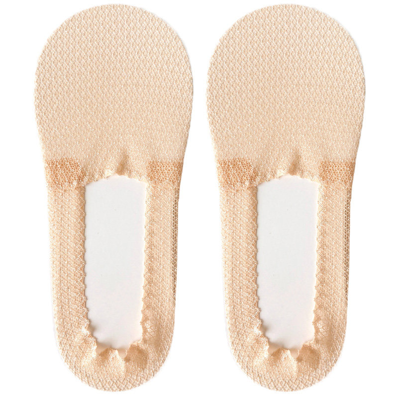 QINEI seven-inner solid color invisible socks women non-slip lace grid shallow cotton bottom breathable thin summer boat Socks