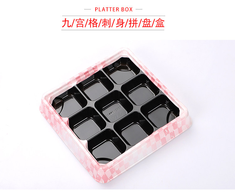High-grade printing sushi box nine-grid sushi platter disposable packing box takeaway packing box 50 sets up
