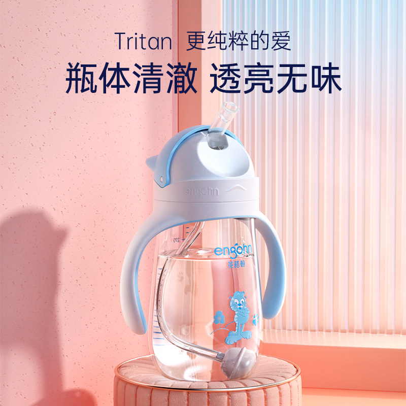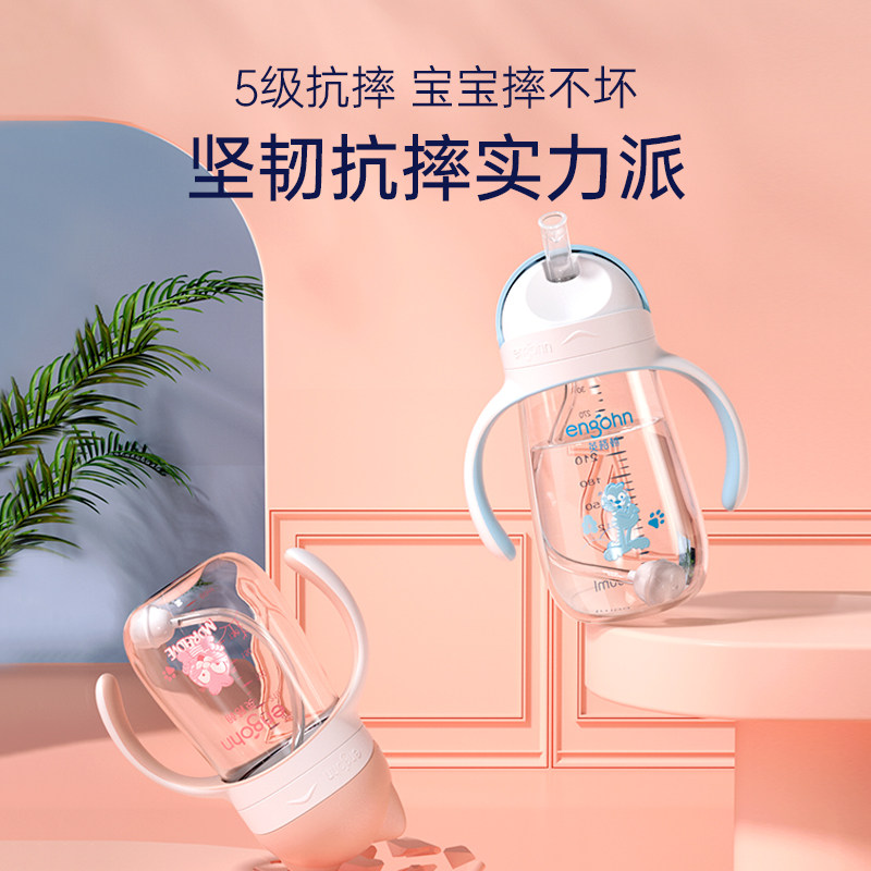 Big baby learning cup straw cup children's water cup baby ring bottle drinking water cup anti-drop type dual-purpose belt handle