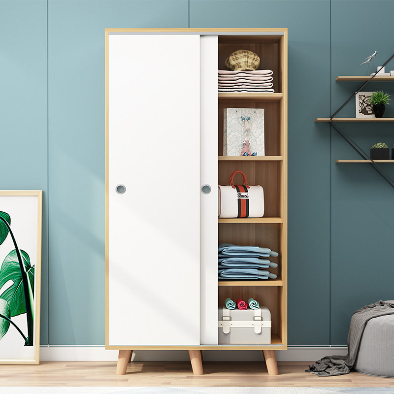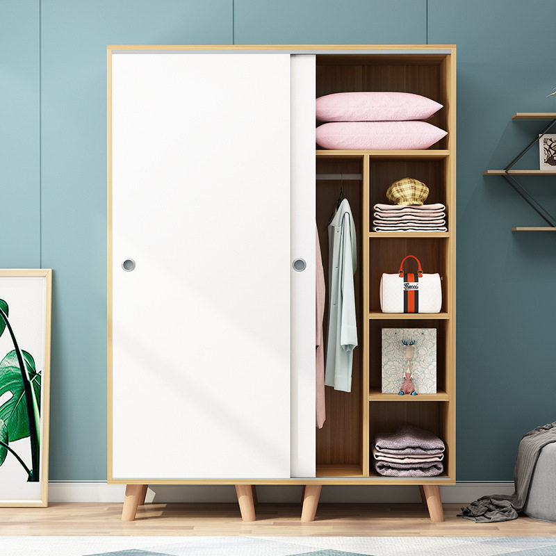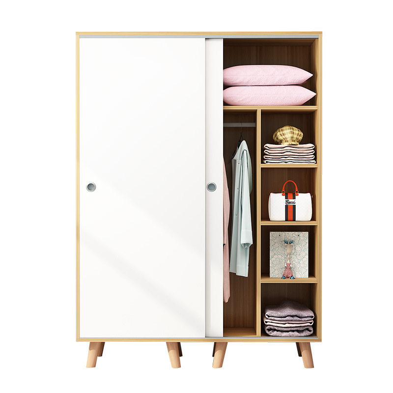 Nordic wardrobe modern minimalist home sliding door hanging clothes wooden rental room cloakroom hotel sliding door wardrobe