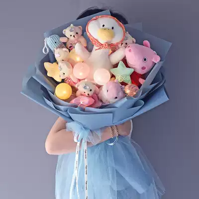 Cartoon doll bouquet hamster doll cheering duck doll creative gift to send girlfriend graduate classmate best friend