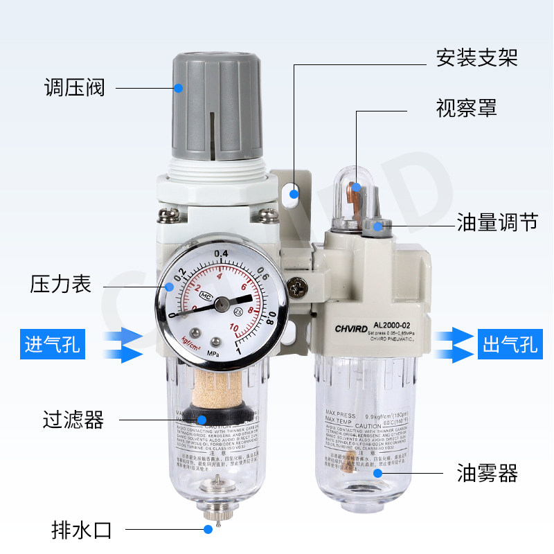 Oil-water separation filter AC2010-02 Two joint pieces triplet AF4000-04 gas source AW pressure valve AR40