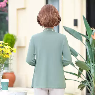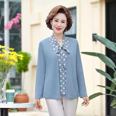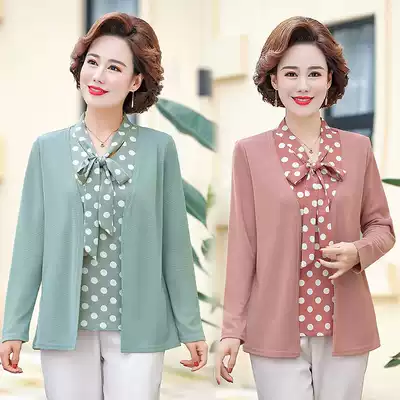 Middle-aged women's autumn jacket long sleeve T-SHIRT size 50-year-old mother dress polka dot loose mock two-piece chun qiu zhuang